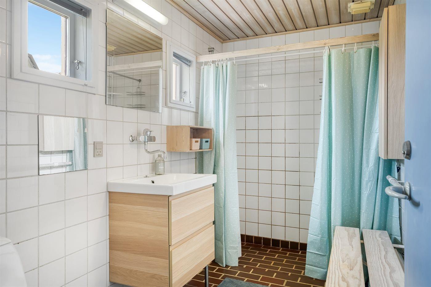 Der er 1 badeværelse med bruseniche og 1 toilet.