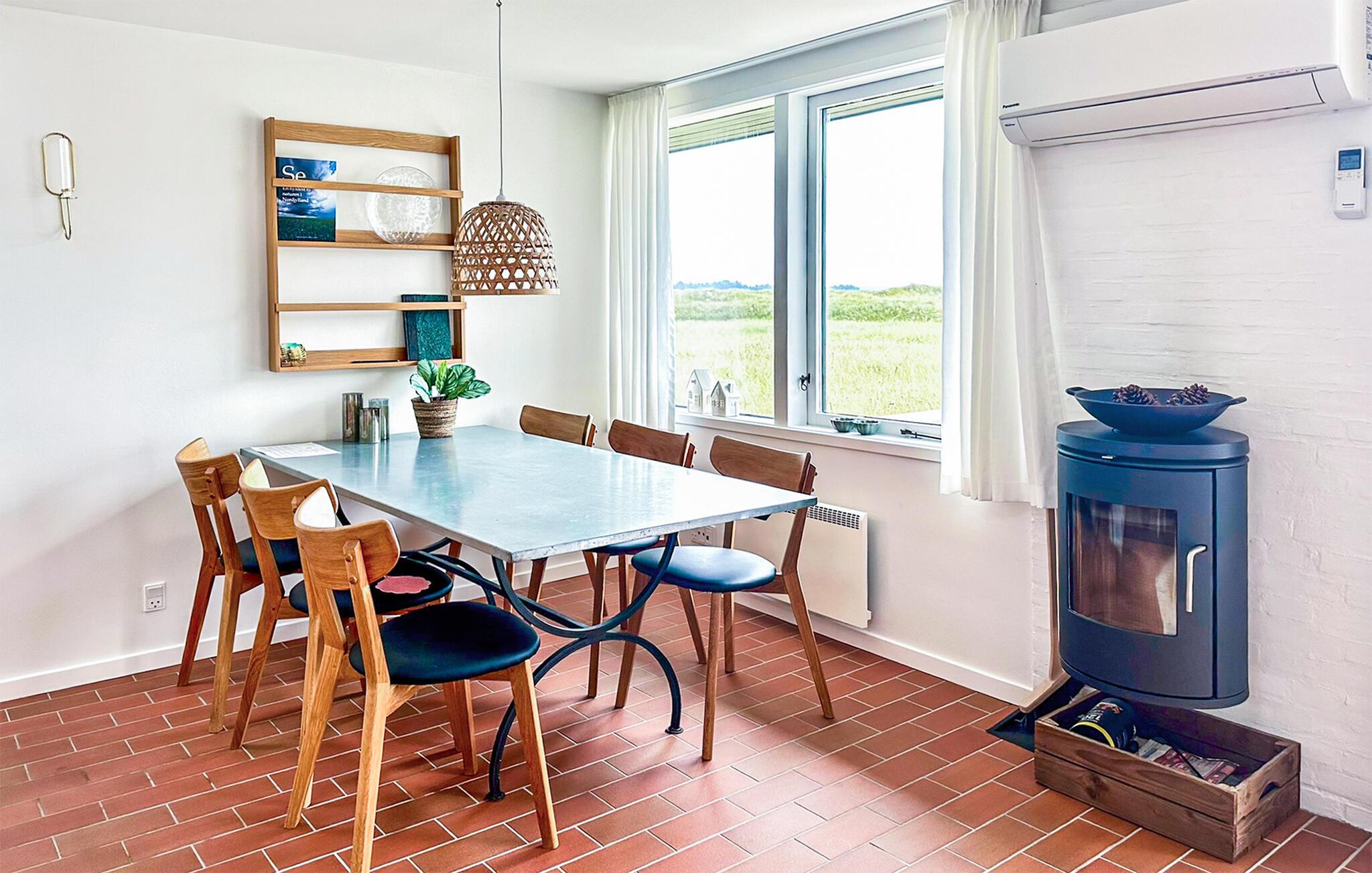 Jeres charmerende feriehus ligger midt i klitlandskabet og giver jer alt, hvad I har brug for til et afslappende og komfortabelt ophold. Omgivet af fredelig natur og vidtstrakte landskaber kan I virkelig finde ro og lægge hverdagens stress bag jer. Start dagen i det veludstyrede køkken, hvor I kan tilberede en lækker morgenmad til jeres kære. Den hyggelige stue indbyder med sin komfortable sofa og det flotte spisebord til hyggelige stunder.