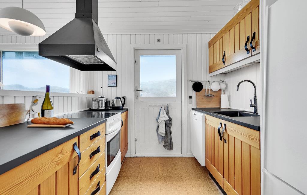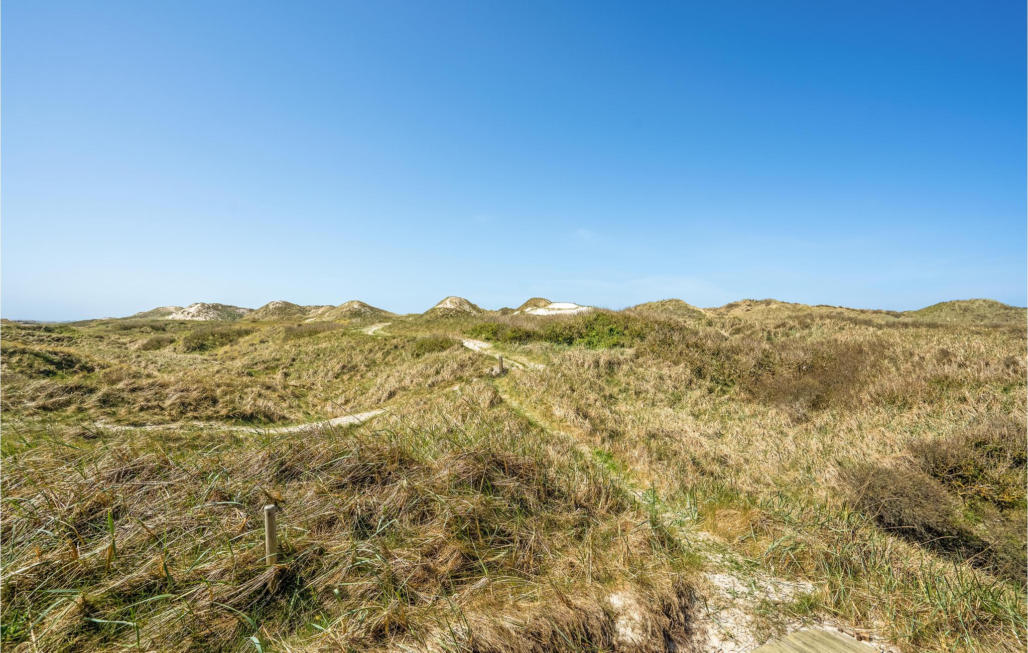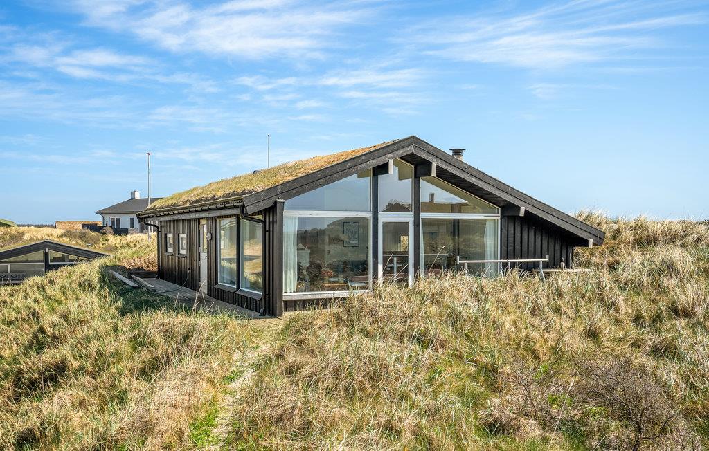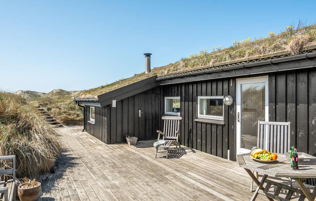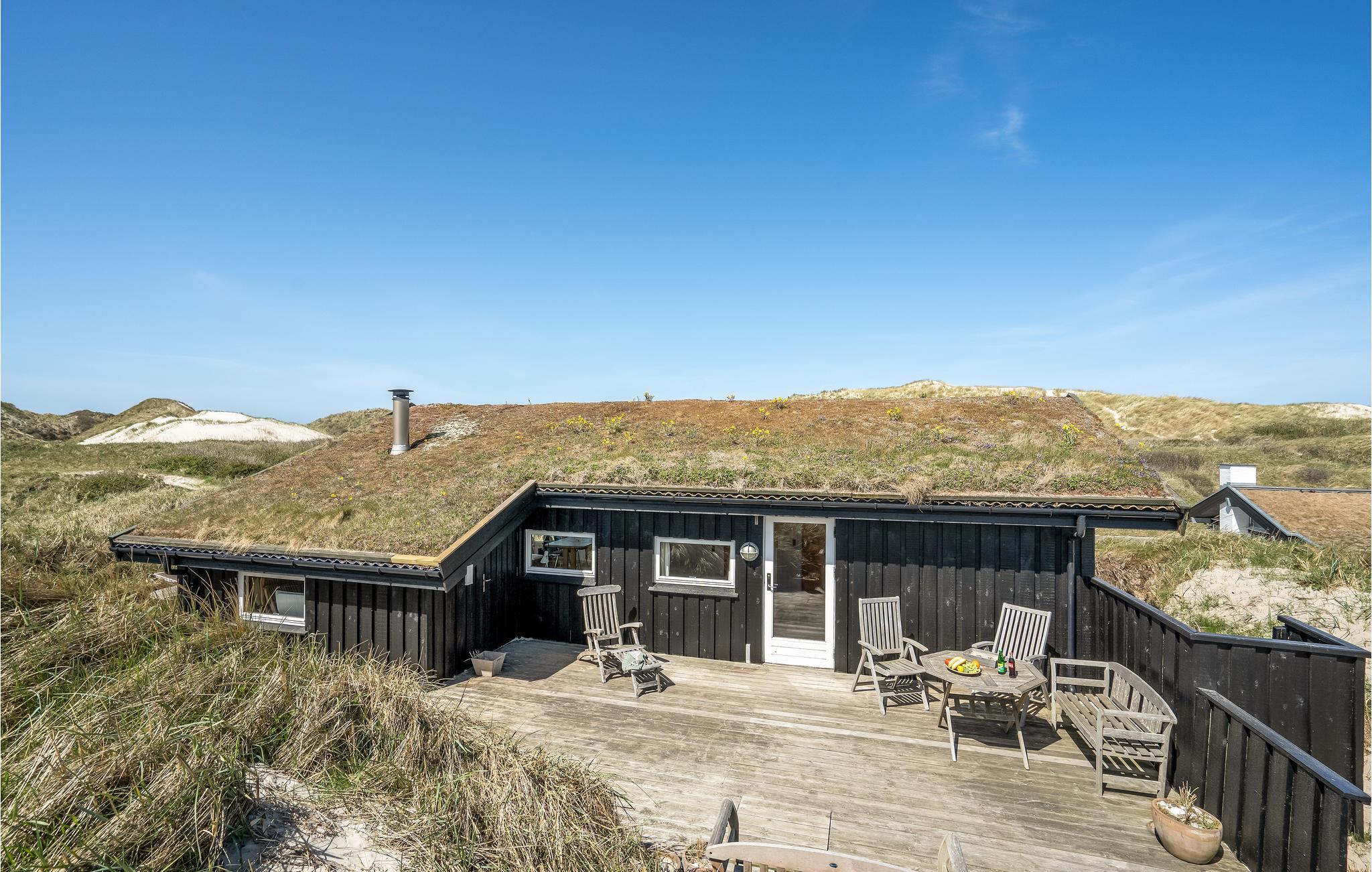 Da den ene side af huset udelukkende består af vinduer, har I en vidunderlig udsigt over klitlandskabet fra stuen med åbent til kip. Huset er smagfuldt møbleret, og den kombinerede opholds- og spisestue med åbent køkken, brændeovn og fladskærm bliver samlingspunktet til mange hyggestunder.