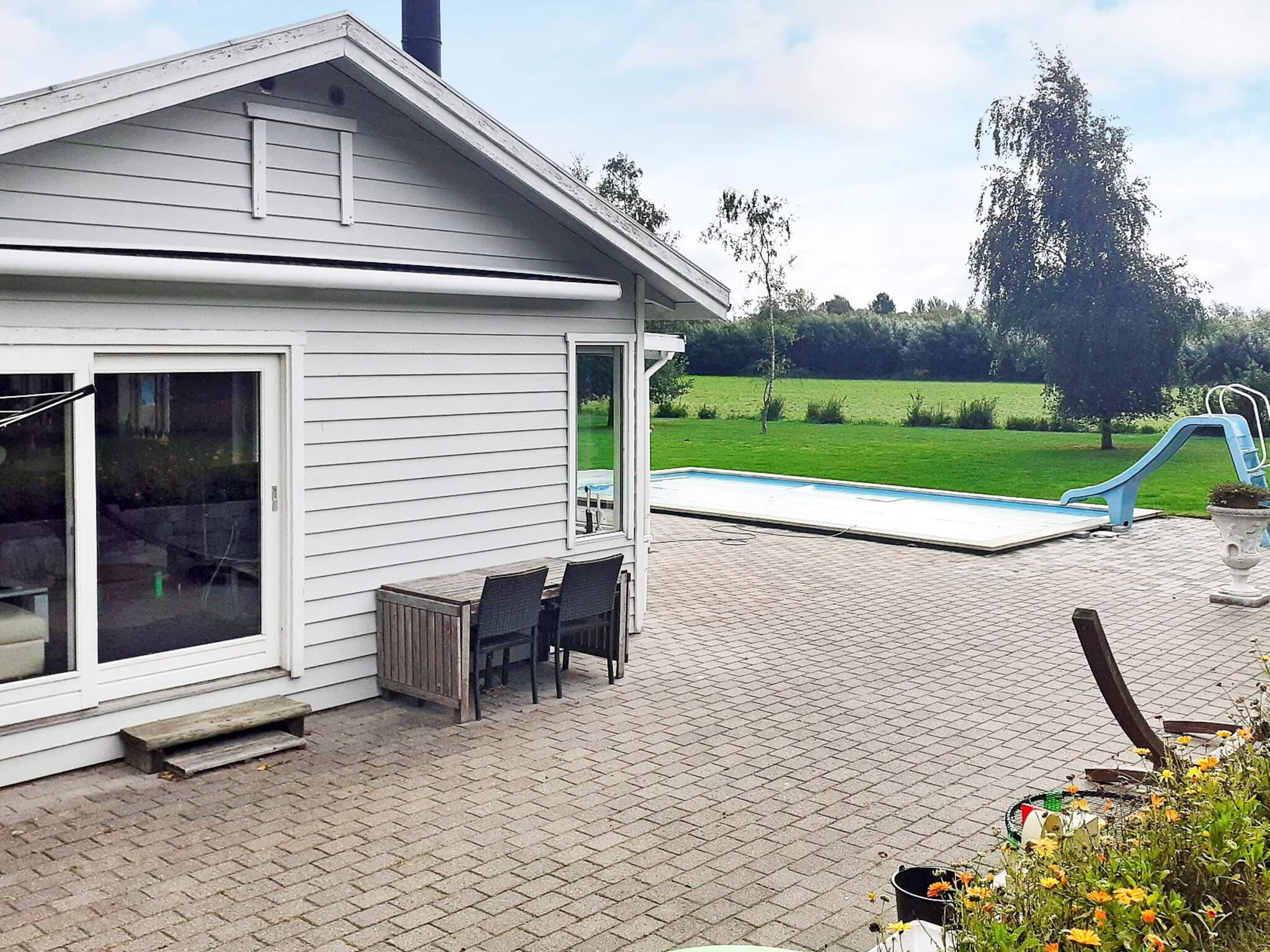 Feriehus med 149 m² boligareal og 32 m² udendørs pool på den rummelige ejendom. Smukt ugeneret, i rolige og fredelige omgivelser med dejlig udsigt over de omkringliggende marker. Huset er oprindeligt opført i 1969 og er gennemgribende renoveret i 2006. Det har en rummelig entré med adgang til stort badeværelse med boblende spabad og behagelig gulvvarme. Der er tre soveværelser i huset; to af dem med hver en dobbeltseng, den tredje med en dobbeltseng og en udfoldelig dobbelt sovesofa. Derudover er der et rummeligt, separat anneks ved siden af ??på ejendommen med dobbeltseng og køle/fryseskab.