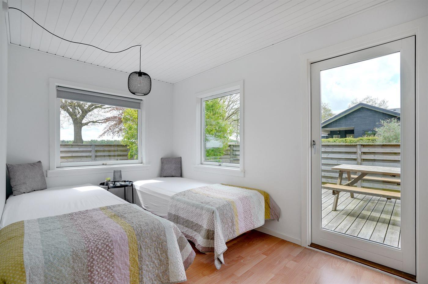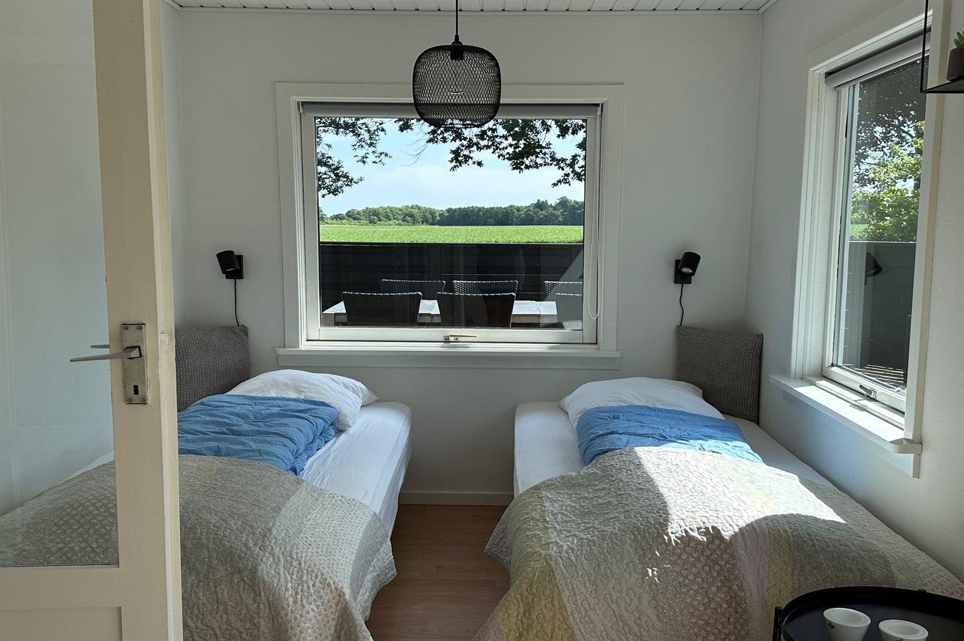 Der er i alt 3 soveværelser. Sovepladserne fordeler sig på: 4 sovepladser i enkeltsenge. 2 sovepladser i køjeseng.