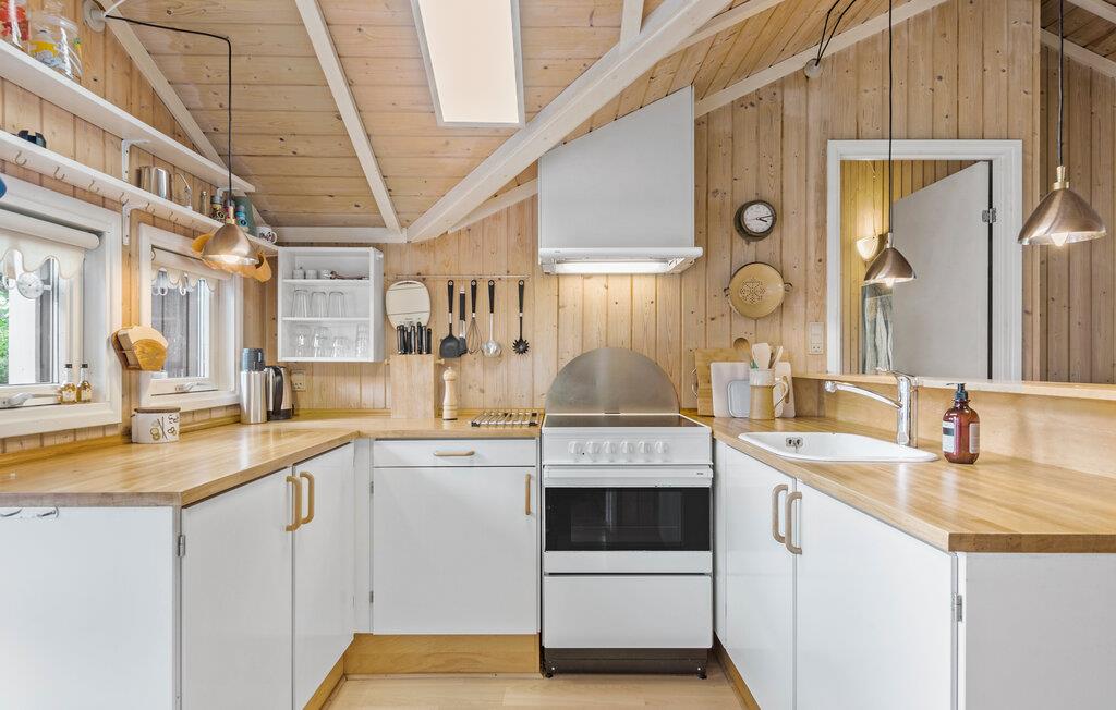Dette skønne sommerhus i Rødvig Stevns har en hyggelig atmosfære og giver jer mange muligheder for at tage på udflugter. Begynd dagene med morgenmad i roligt tempo, mens I planlægger nogle aktiviteter. Det store fællesrum giver jer et skønt sted at samles, for her falder lyset dejligt ind fra flere sider, og på de kølige dage kan I tænde op i brændeovnen og gøre det ekstra stemningsfuldt. Når solen er fremme, kan I læne jer tilbage på husets store terrasse og fyre op i grillen på de lune sommeraftener.