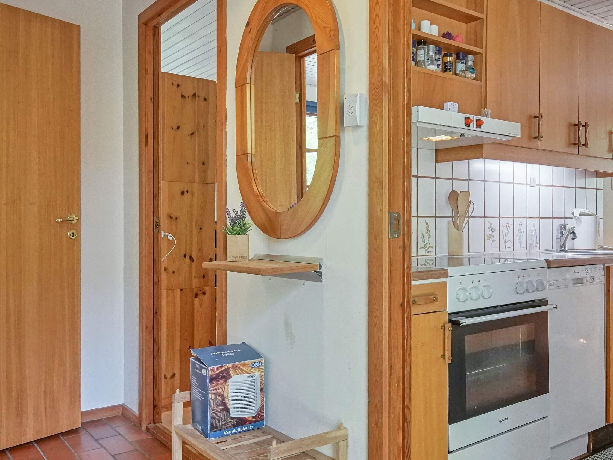 Sommerhus med rolig beliggenhed på kuperet naturgrund ca. 2 minutters gang fra børnevenlig sandstrand. Medbring selv brænde til brændeovnen.