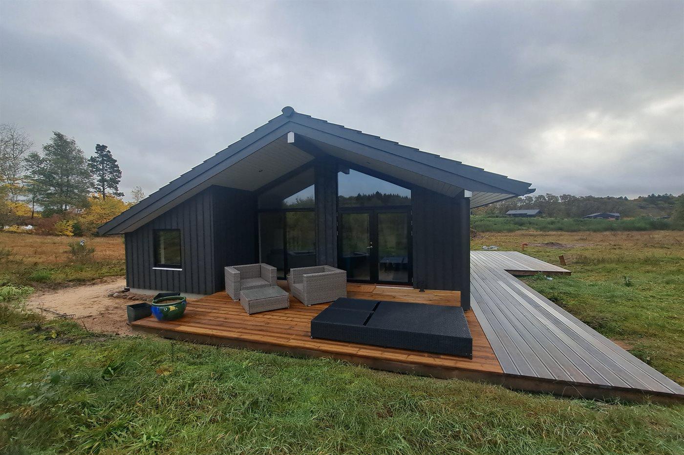 Nybygget sommerhus ved Rørbæk Sø med terrasse