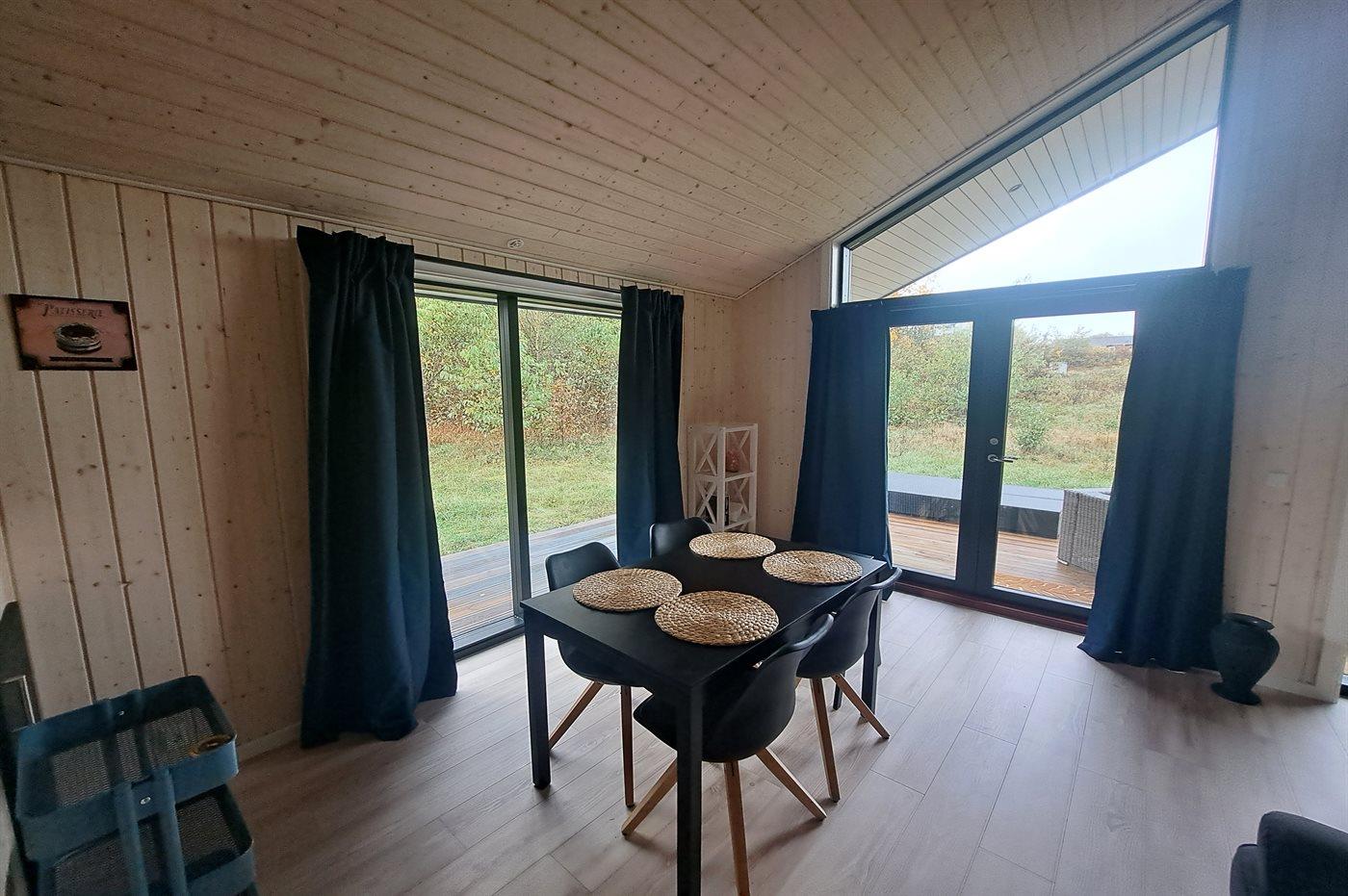 Indvendigt fremstår sommerhuset lyst og moderne med en rigtig god planløsning, præcis som man forventer det af et nybygget hus. Den rummelige stue med køkken-alrum fungerer som husets samlingspunkt, hvor familien kan hygge sig, uanset vejret. Med to soveværelser er huset velegnet til en familie med børn eller ét par som ønsker at holde ferie i naturskønne omgivelser.