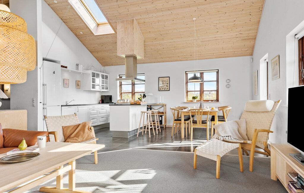 Tag familien under armen og rejs til Midtjylland, hvor I lidt øst for Brande får base i dette indbydende hus. Indvendigt fremtræder huset lyst og luftigt med loft til kip og flere lækre lysindfald gennem de sprossede vinduer. Hvis vejret bider lidt fra sig, kan I tænde op i brændeovnen, der giver varme og et knitrende lydtapet til indendørshyggen med madlavning i det veludstyrede køkken, måltiderne ved spisebordet og brætspil eller en god film i det behagelige sofaområde.