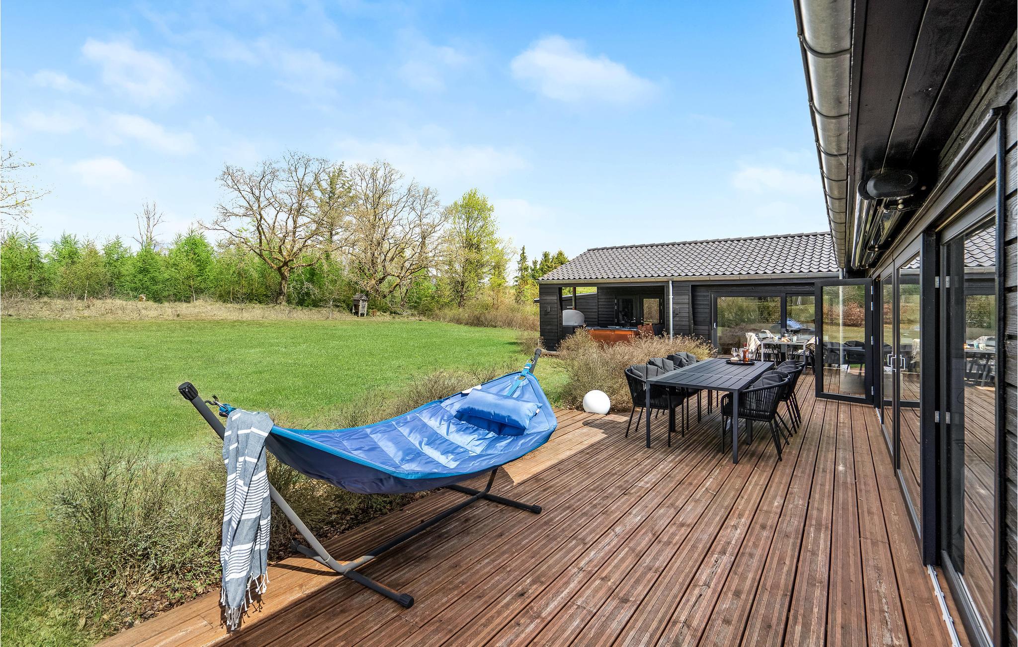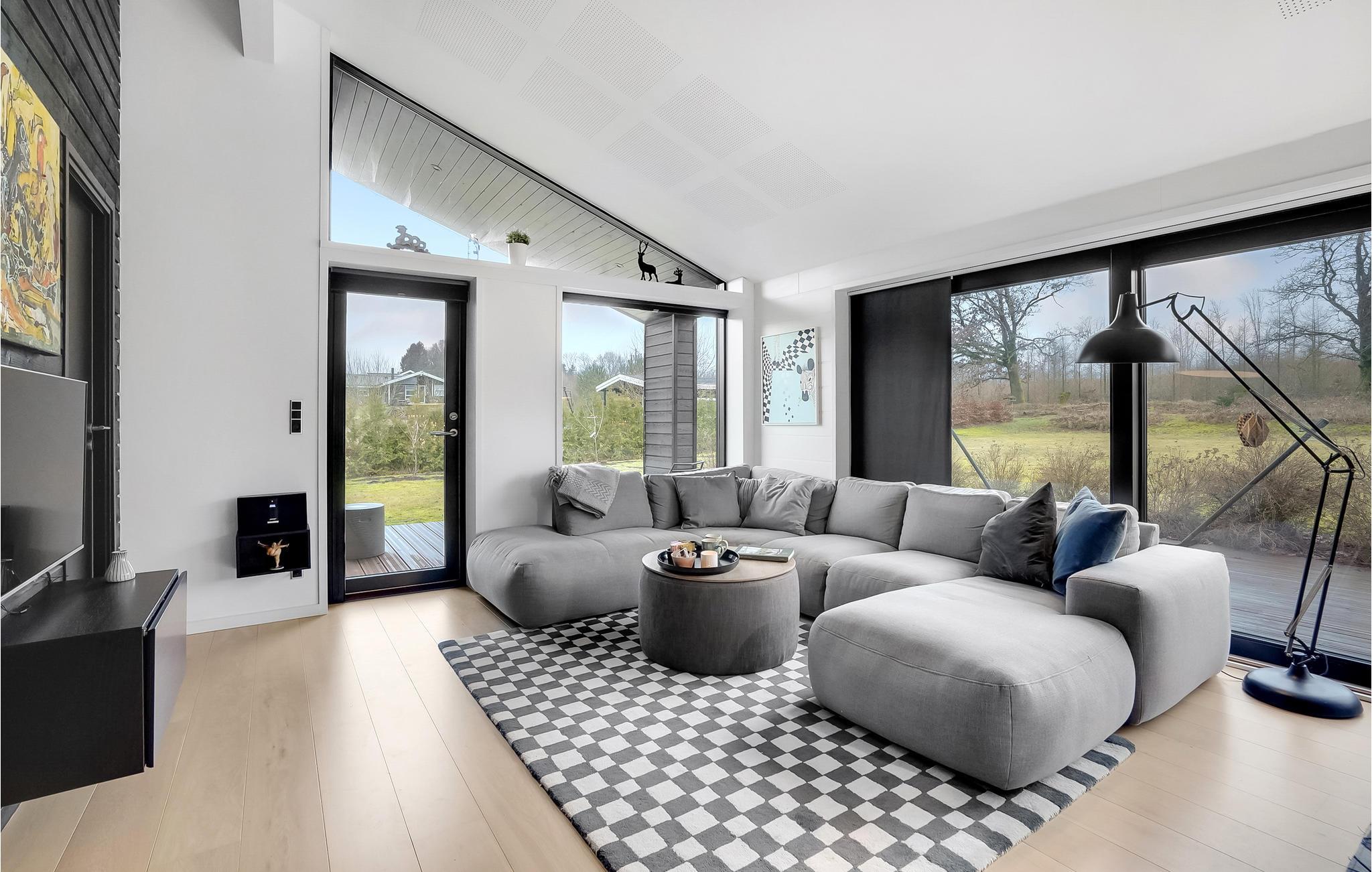 Luksuriøst feriehus med moderne indretning, udendørs spa, aktivitetsrum og store terrasser nær Rørbæk Sø.
