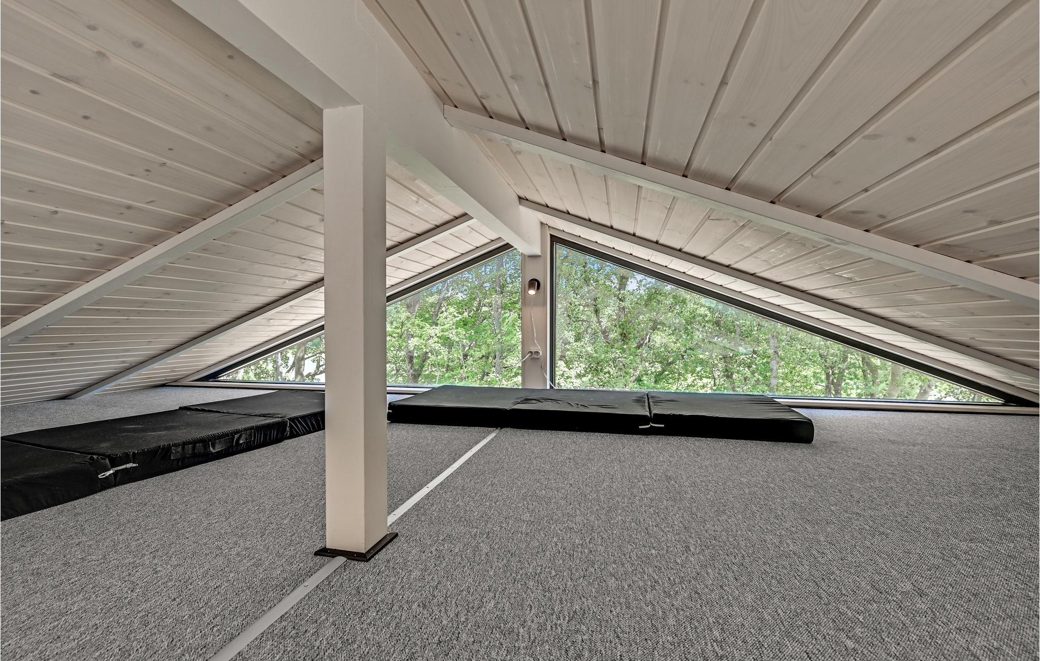 Der er 5 soveværelser med senge til op til 13 personer og en hems med mulighed for ekstra sovepladser. Der er også to badeværelser. Til underholdning er der et aktivitetsrum med bordtennis og airhockey. Husets højdepunkt er den private indendørspool.