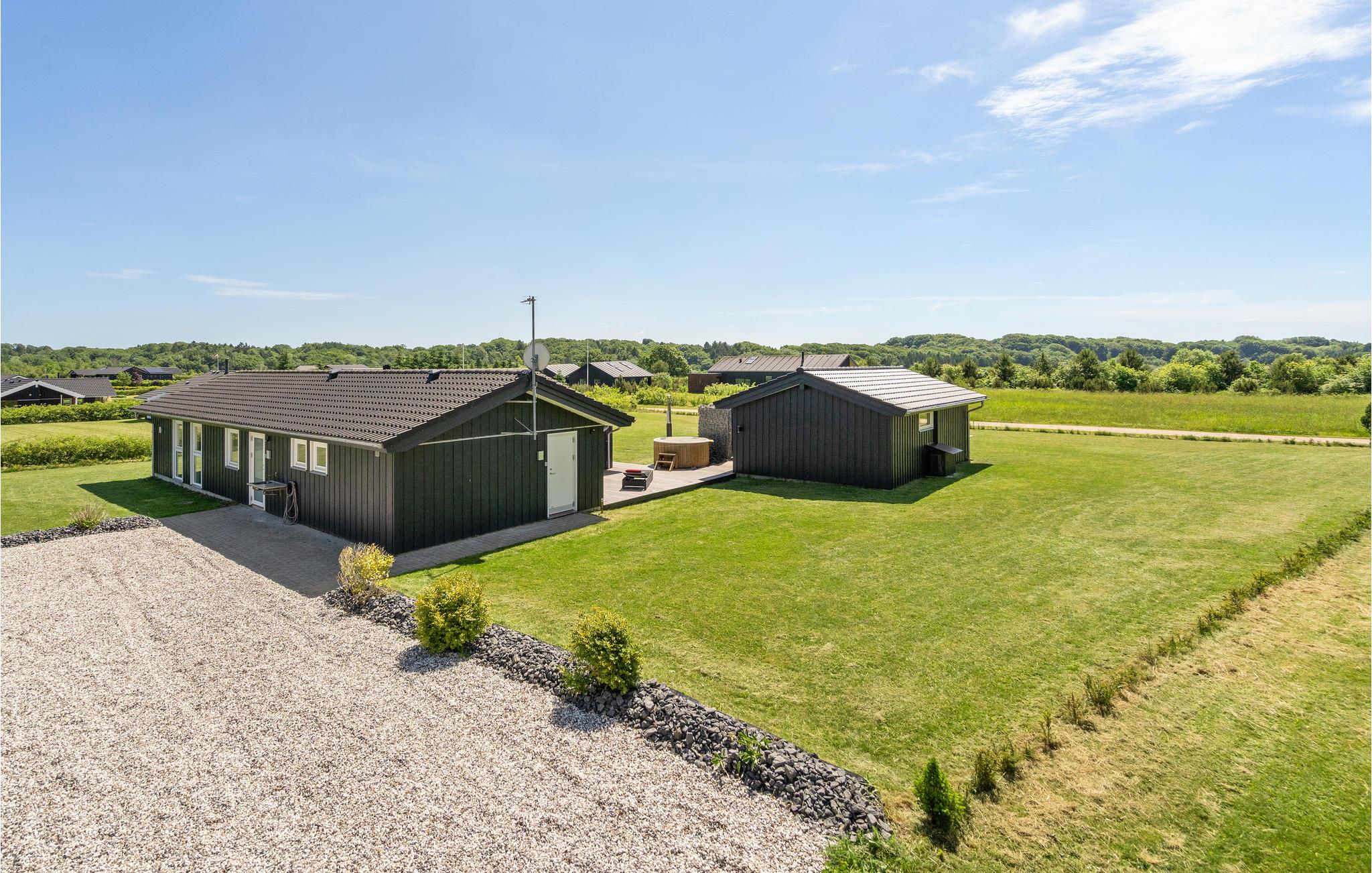 Hyggeligt feriehus ved Rørbæk Sø med sauna, vildmarksbad og aktivitetsrum i naturskønne omgivelser.