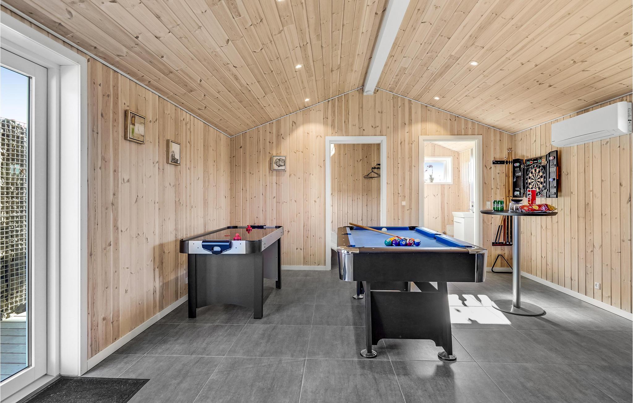 Meget smukt beliggende i et attraktivt lystfiskerområde finder I dette dejlige feriehus. Huset indeholder et veludstyret køkken med adgang til husets terrasse og den hyggelige opholdsstue. Der er i alt fem gode soveværelser, hvoraf de fire befinder sig i huset, mens et femte er i annekset, hvor I også finder et stort aktivitetsrum med blandt andet billard og ekstra TV. Annekset har desuden toilet og håndvask. Badeværelset har sauna.