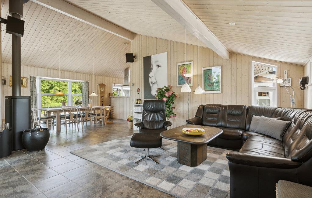 Her kan I nyde livet i fulde drag sammen med jeres børn, og der er masser af plads til leg på husets lille bakketop. Det familievenlige hus er veludstyret og byder på en dejlig træterrasse og en skøn have. Den lyse, smagfulde, åbne planløsning med klinkegulv, loft til kip og store vinduer indgyder hygge og en rolig atmosfære. Glæd jer til aftener med gæt og grimasser og spillehygge ved spisebordet. Nyd solen i græsset med kig til drivende lammeskyer, mens børnene leger i den flotte have med mange gode gemmesteder. Nyd jeres måltider udenfor og mærk, hvordan skuldrene kommer ned. Måske står den på BBQ med efterfølgende koldskål i aften? Senere på aftenen kan de voksne forkæle sig selv med wellness i saunaen og i vildmarksbadet. Slut aftenen af med et glas rosé i havens pavillon.