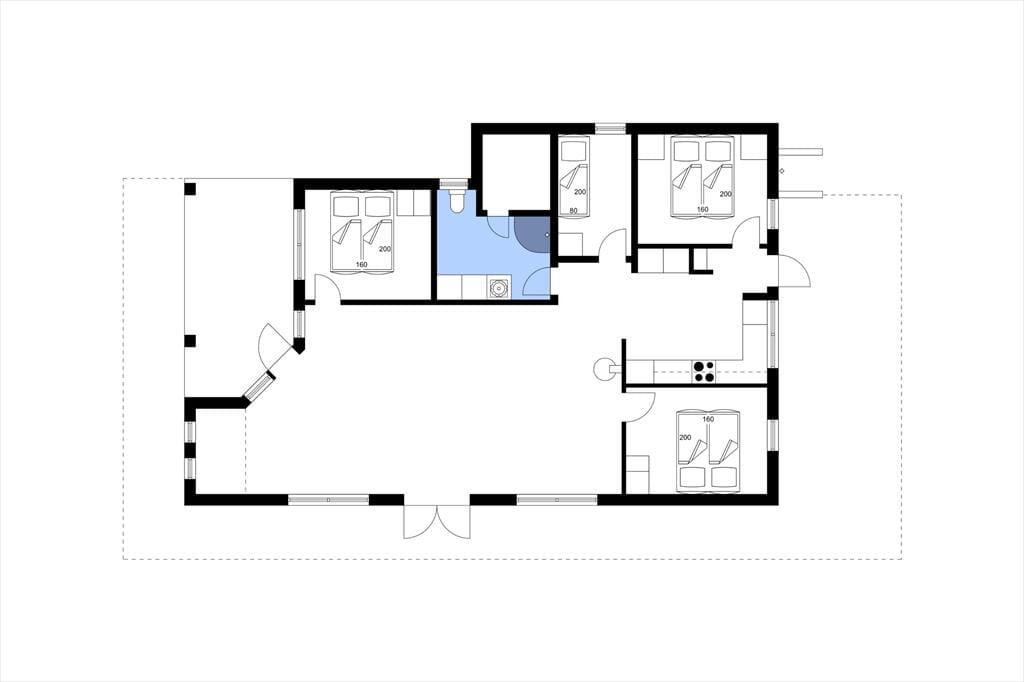 Moderne hus med 4 gode soveværelser, hvoraf de 3 har dobbeltsenge og det ene en enkeltseng. Huset er smagfuldt indrettet. Stuen indeholder brændeovn, varmepumpe, TV samt alkove med seng og har udsigt og udgang til den forreste terrasse. Det åbne og lyse køkken har opvaskemaskine og udgang til bagvendt terrasse. Der er badeværelse med brus samt lækker sauna, hvorfor også de kolde vinteraftener kan nydes i dette pragtfulde hus. Udendørsbruseren er med varmt vand og kun åben i sommerperioden fra maj-oktober. På den omgivende træterrasse kan I nyde solen dagen lang og i den ugenerte have krydser rådyrene jævnligt. Det dejlige vildmarksbad med plads til 5-7 personer, gør huset oplagt til ferier året rundt. Forestil dig at sidde midt i naturen en vinteraften og nyde det varme vand og et glas vin.