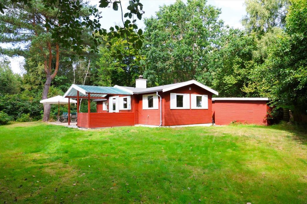 Her kan ferien nydes i et dejligt dansk sommerhus. Sommerhuset ligger på en stor grund, tæt på skov og den særdeles gode sandstrand ved Telegrafvej.