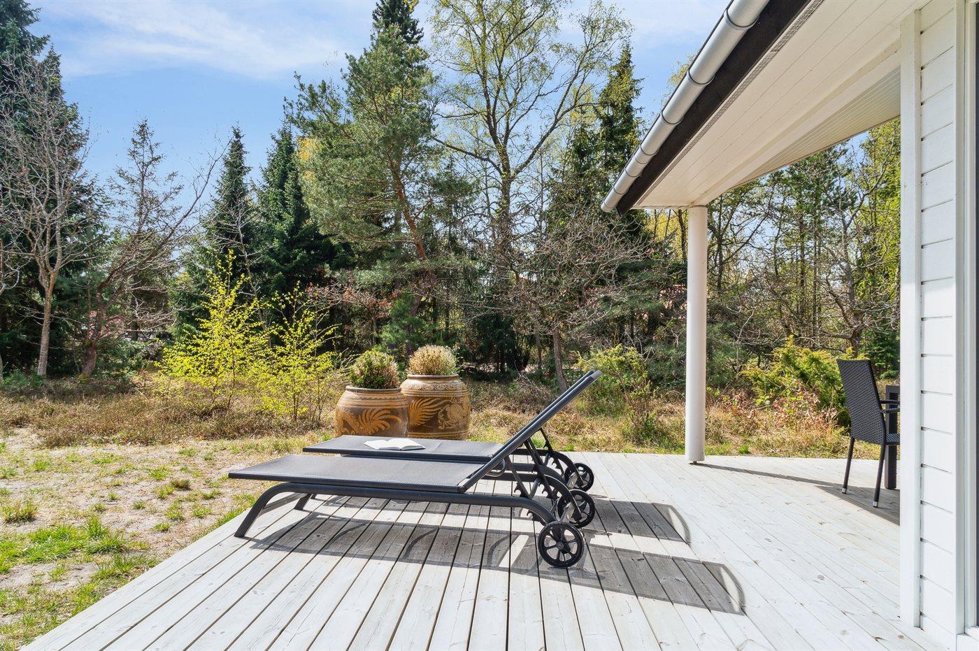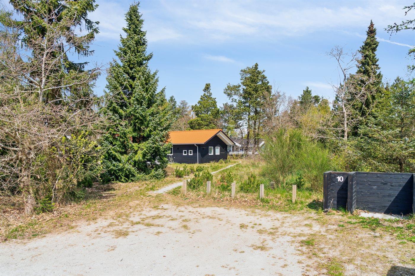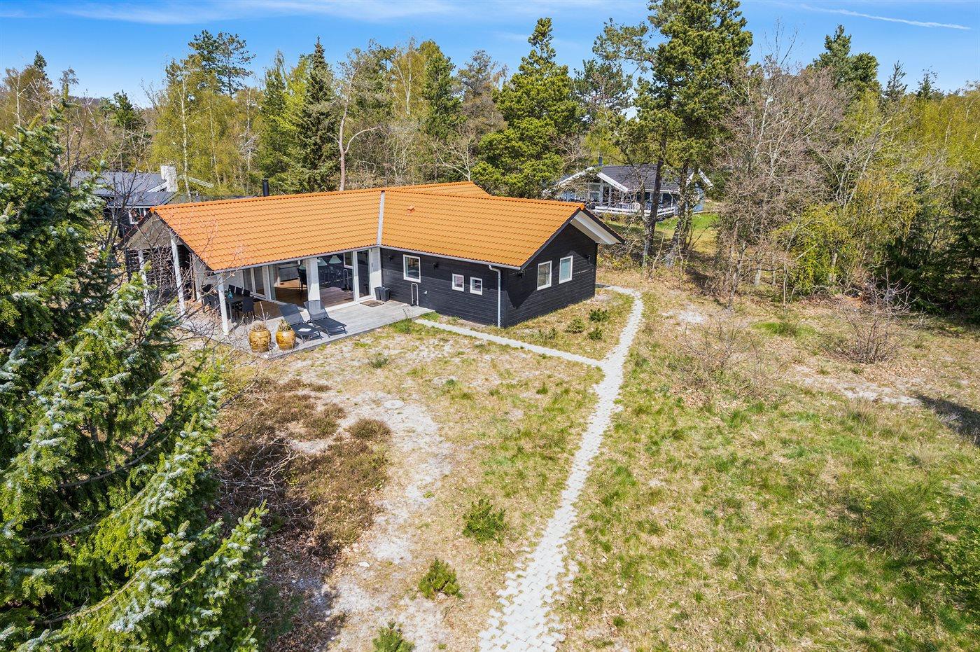 Ferieboligen er beliggende på en 2000 m² stor naturgrund. Der er 150 m til fjorden. Nærmeste forretning er beliggende i en afstand af 2100 m. Til ferieboligen hører 60 m² terrasseareal. Desuden er der 30 m² overdækket terrasse. Grill til rådighed. Der er installeret stik til opladning af elbil. (Tesla). Parkering ved ferieboligen.