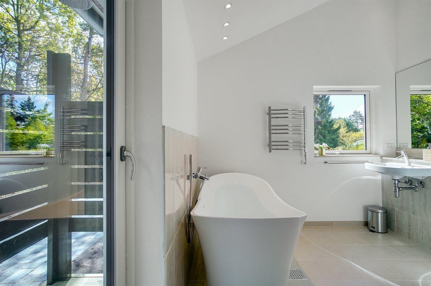 Der er 2 badeværelser med bruseniche og 2 toiletter. Der er gulvvarme på 2 badeværelser.. Badekar.
