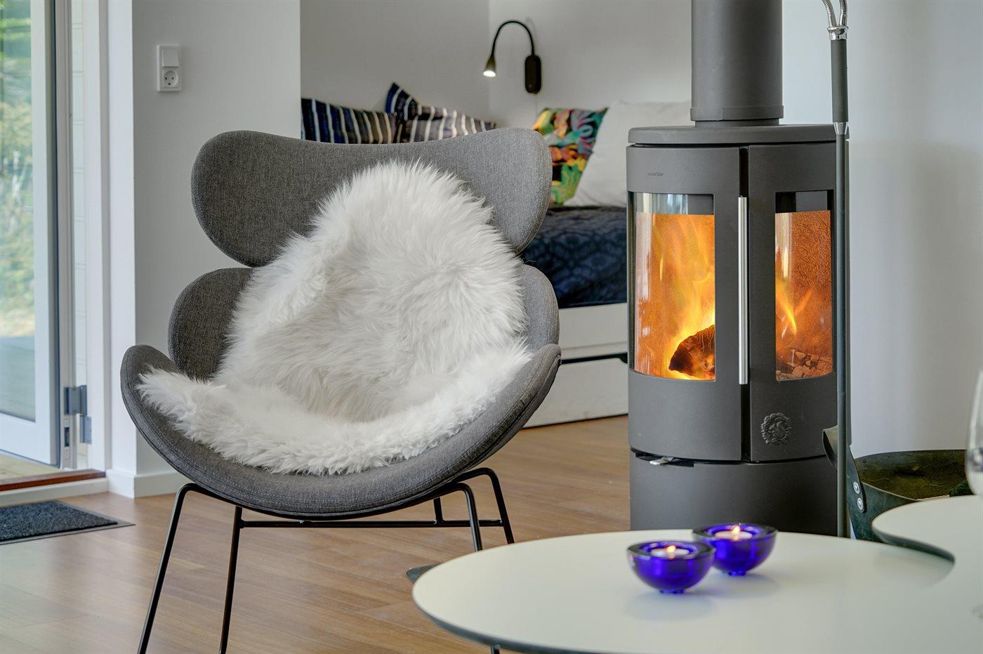 Huset egner sig til ferien hele året rundt og opvarmning sker effektiv og energivenligt med en luft-til-luft varmepumpe.