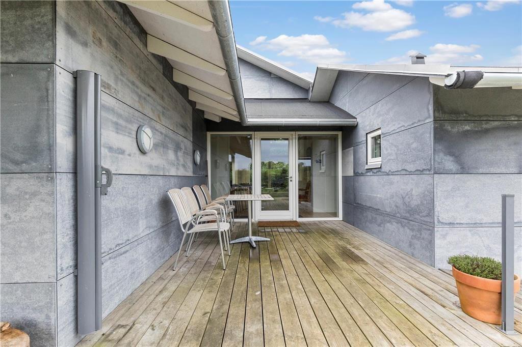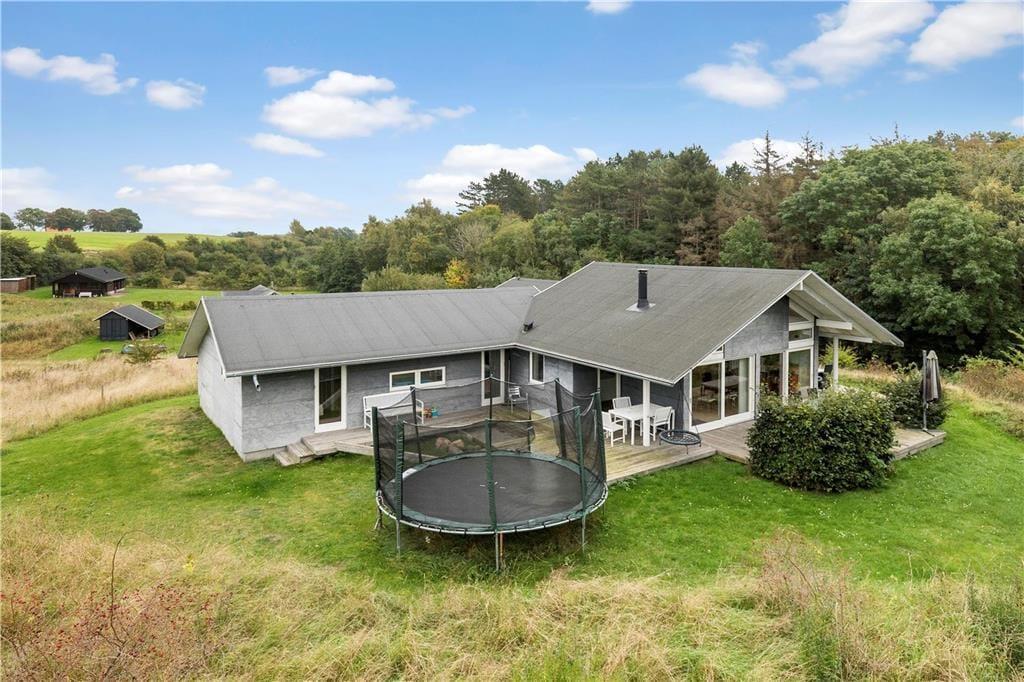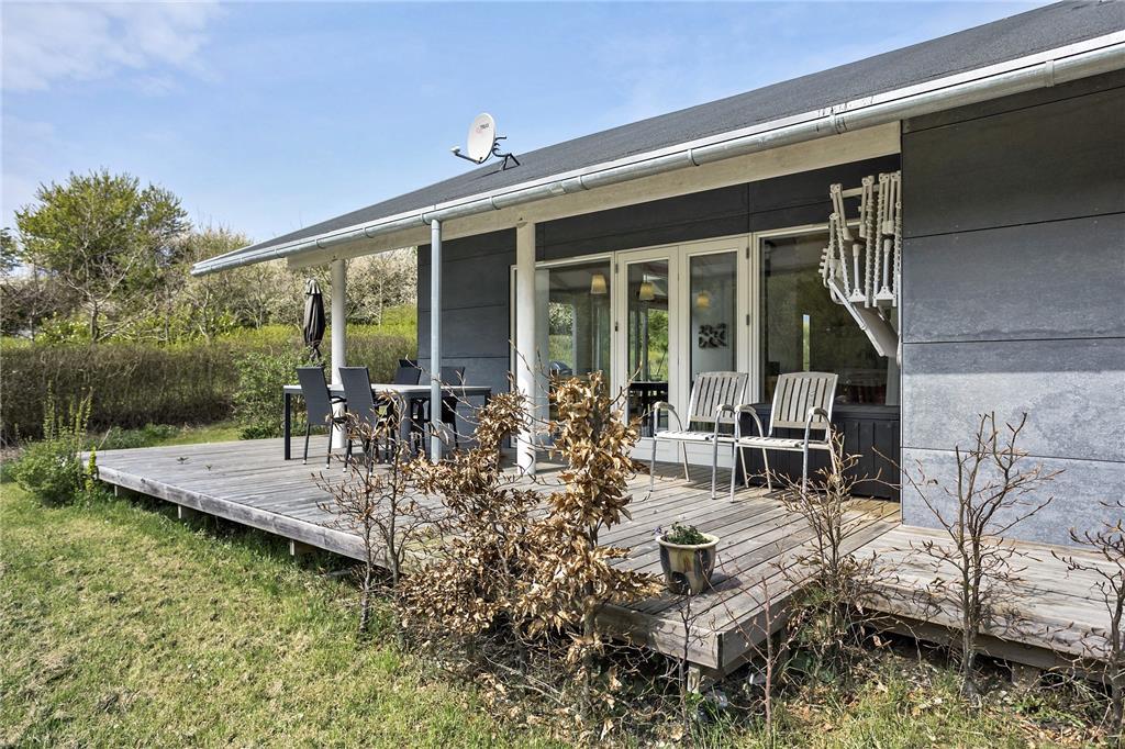 Huset har en 1416 m2 stor åben naturgrund med flere delvis overdækkede træterrasser. Ved feriehuset er der havemøbler, liggestole, gas- og kuglegrill, gynge, sandkasse og trampolin.