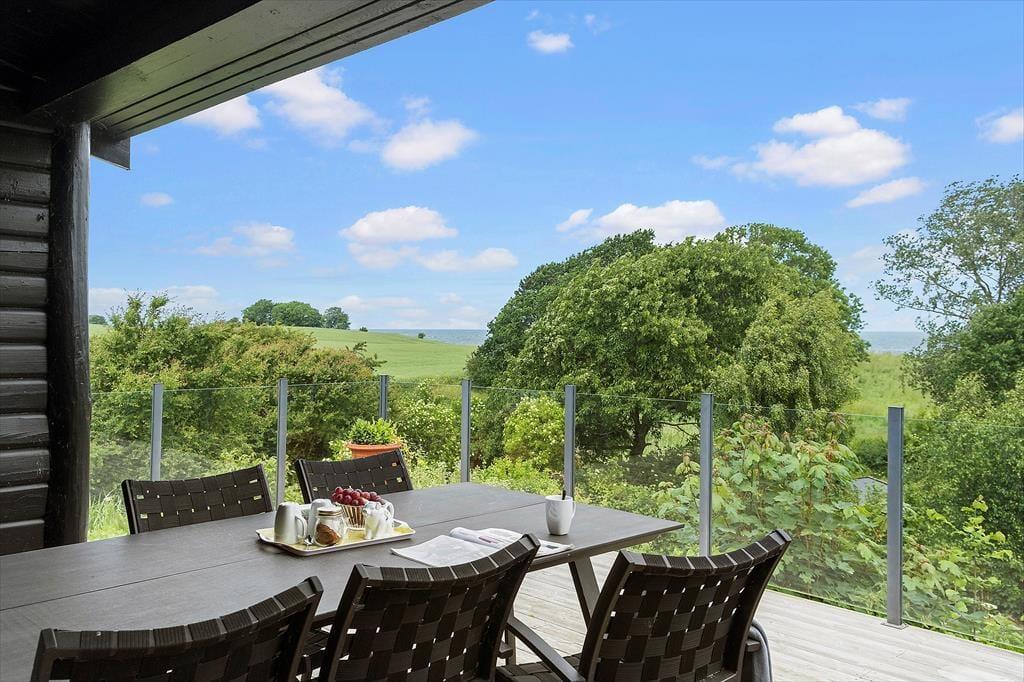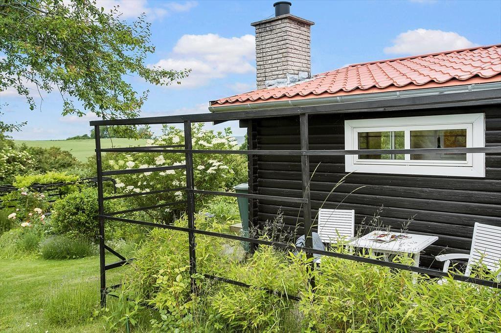 Huset er beliggende på en 1632 m2 stor grund. Der er lagt meget vægt på udearealerne, hvor du bl.a. finder en lækker nyere delvis overdækket og afskærmet træterrasse, hvor du kan falde i svime over udsigten til vandet, nyde solen og freden. Der er en skøn og meget velplejet have. Hyggeligt bålsted med bænke. Desuden er der flere gode fliseterrasser, hvor man kan rykke rundt alt efter om man ønsker sol eller skygge. Fra haven er der gennemgang til stranden. Ved feriehuset er der havemøbler, grill, legehus og sandkasse
