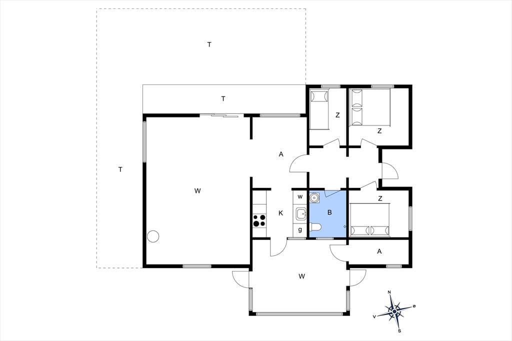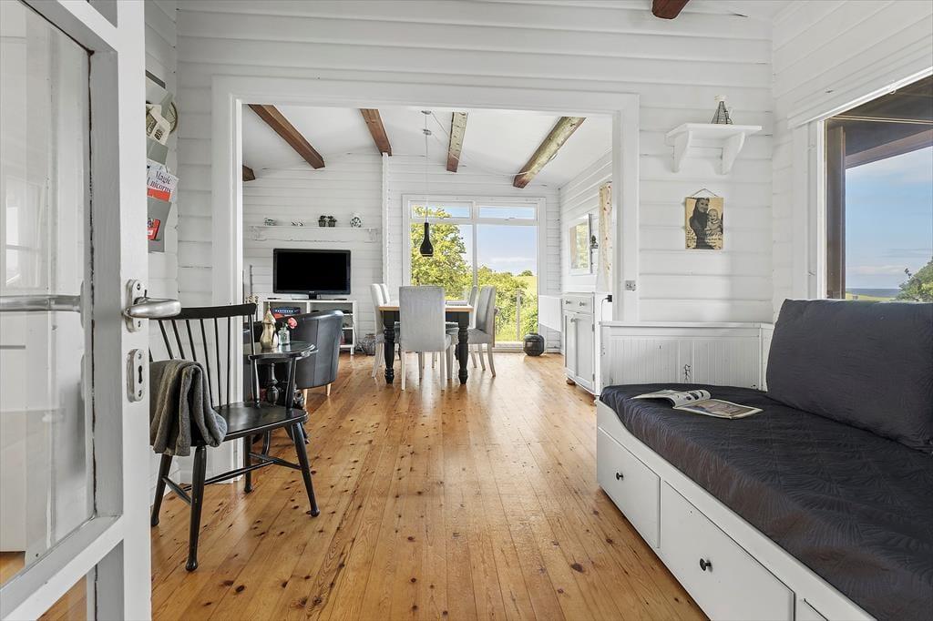 Feriehuset er indrettet med separat køkken og opholdsstue. Køkken med lyse elementer og mørk bordplade, samt en hyggelig spiseplads. Køkkenet indeholder keramisk komfur, mikroovn, køleskab med fryser, opvaskemaskine og vaskemaskine. Hyggelig lys opholdsstue med synlige loftsbjælker, brændeovn, udgang til stor skøn træterrasse. Sofaer og lænestol, hyggelig spiseplads, TV med adgang til youSee TV-pakke via Chromecast. Adgang til andre streamingtjenester kræver eget login. Hyggelig lille udestue med bord og stole. Lyst badeværelse med bruseniche, og elvarme. Tre soveværelser, alle med dobbeltsenge og elvarme. Huset opvarmes med varmepumpe, brændeovn og elvarme.