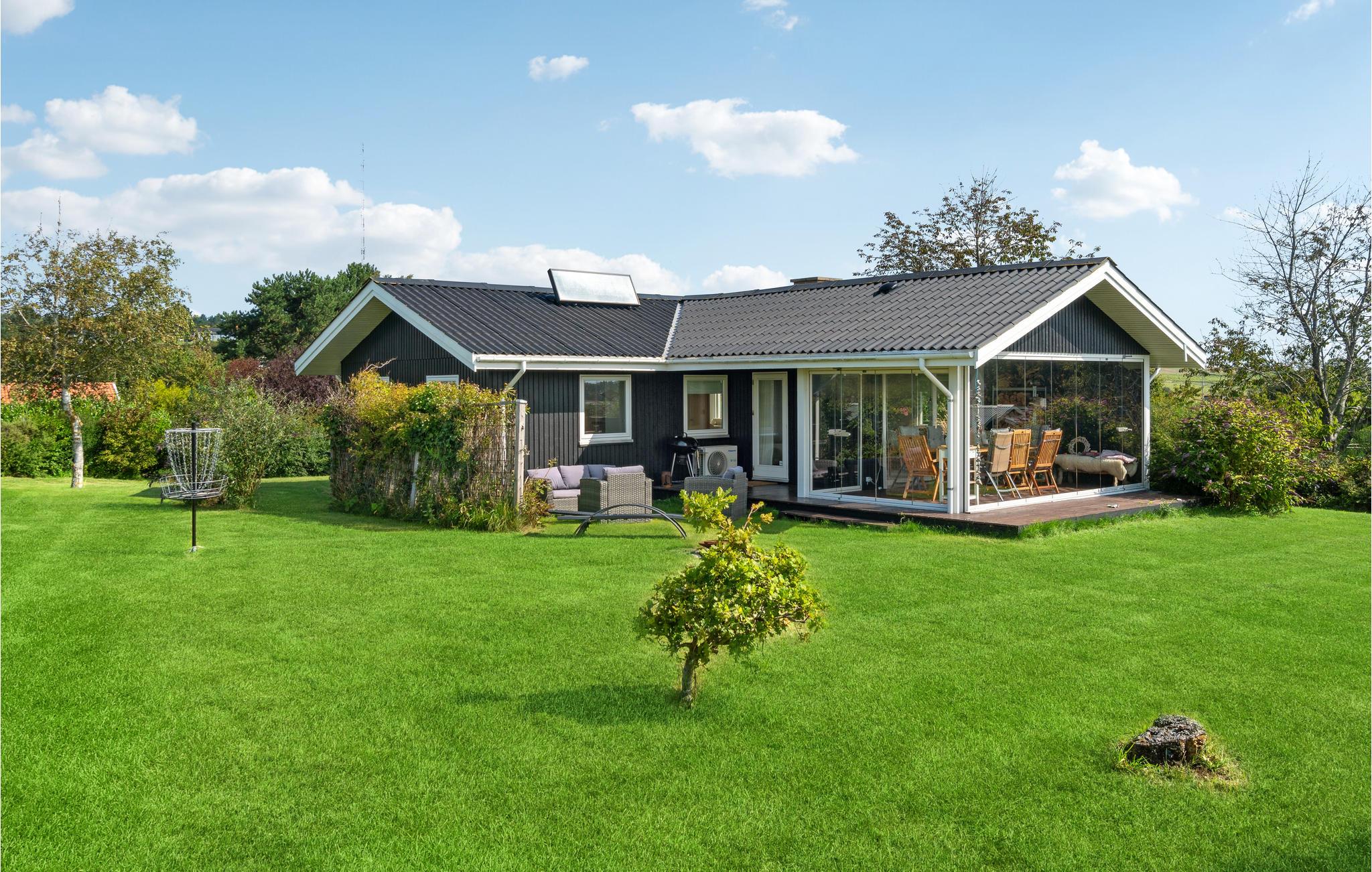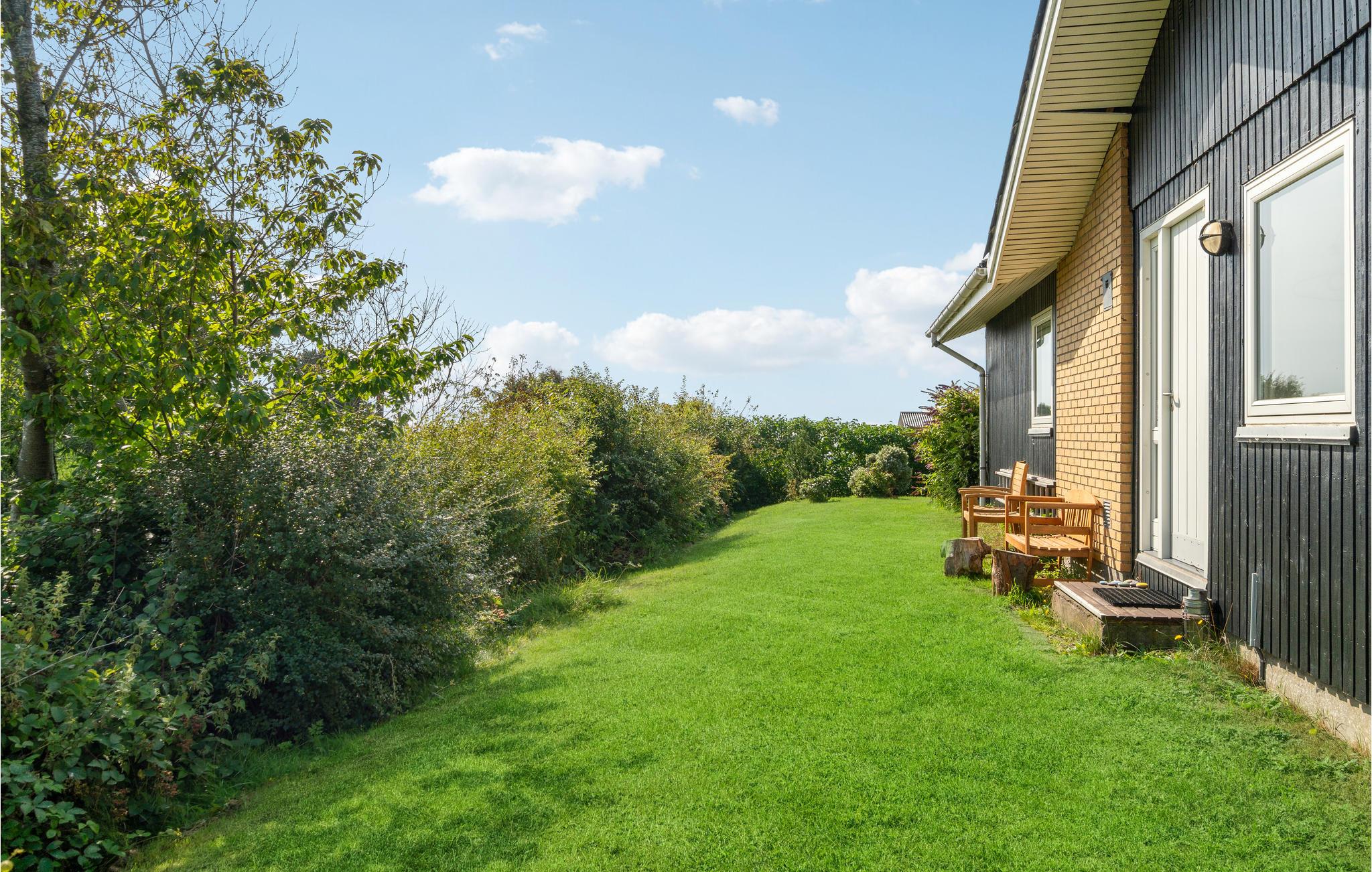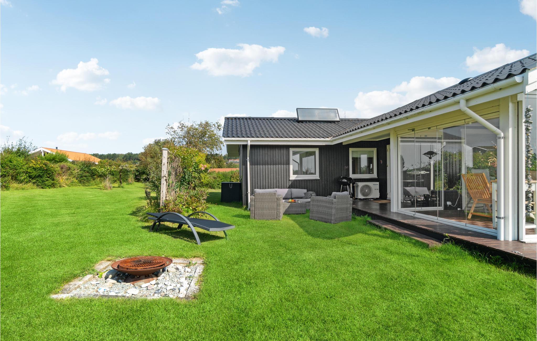 Den indbydende havestue er det perfekte sted at nyde lange aftener med udsigt over haven. Om I holder vinduerne åbne eller lukkede er op til jer. Haven er et dejligt sted at lege og solbade til stor glæde for jeres børn. I kan også grille skumfiduser på bålpladsen.