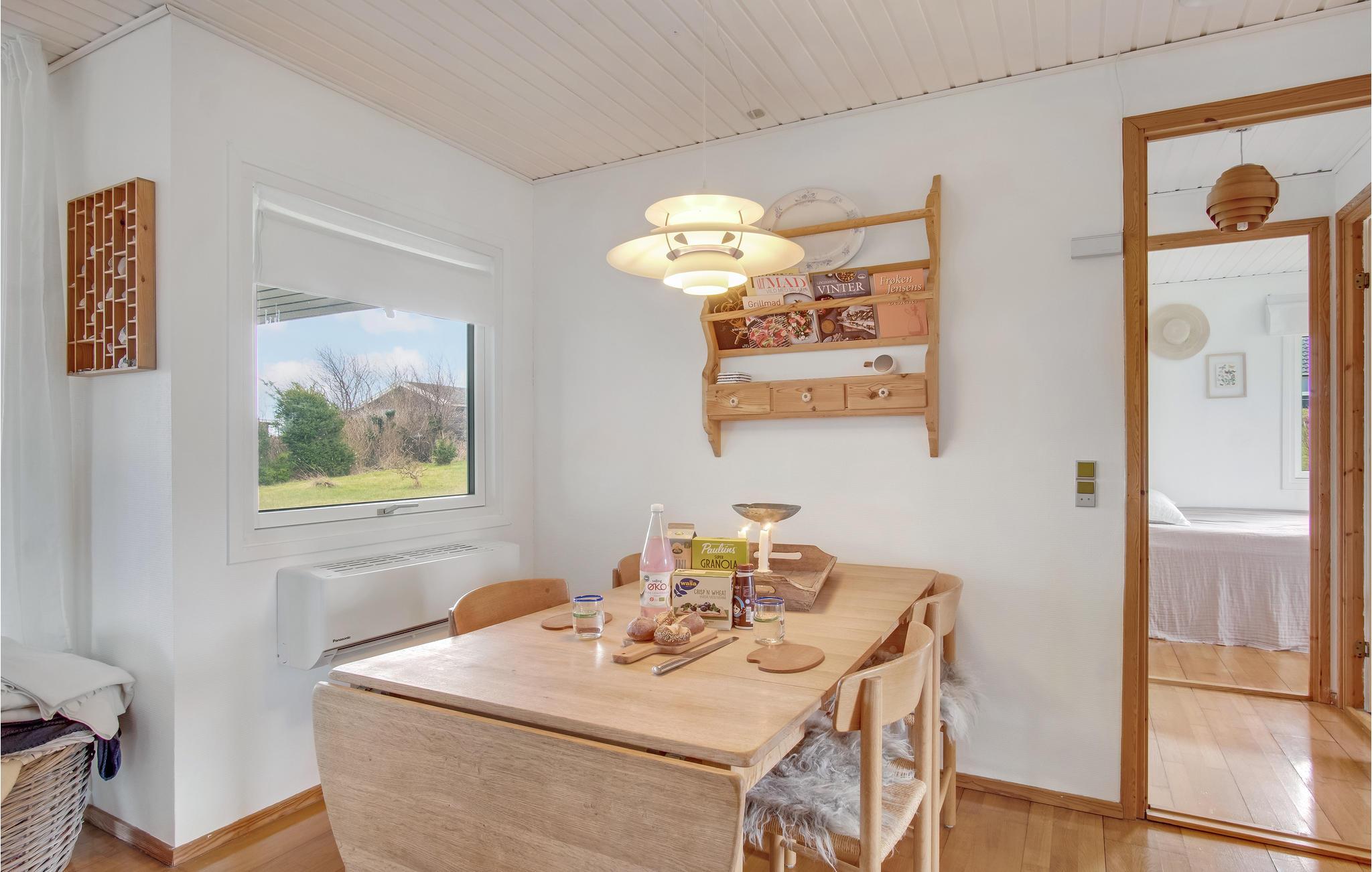 Velkommen til dette charmerende og lyse sommerhus. Så snart I ankommer, vil I føle jer hjemme. Det hyggelige hus med brændeovn er en drøm af hvidt og træ, der bidrager til en dejlig atmosfære. Slå fødderne op i sofaerne, spil kort og se på fugle og det, der sker i bugten, med kikkerten.