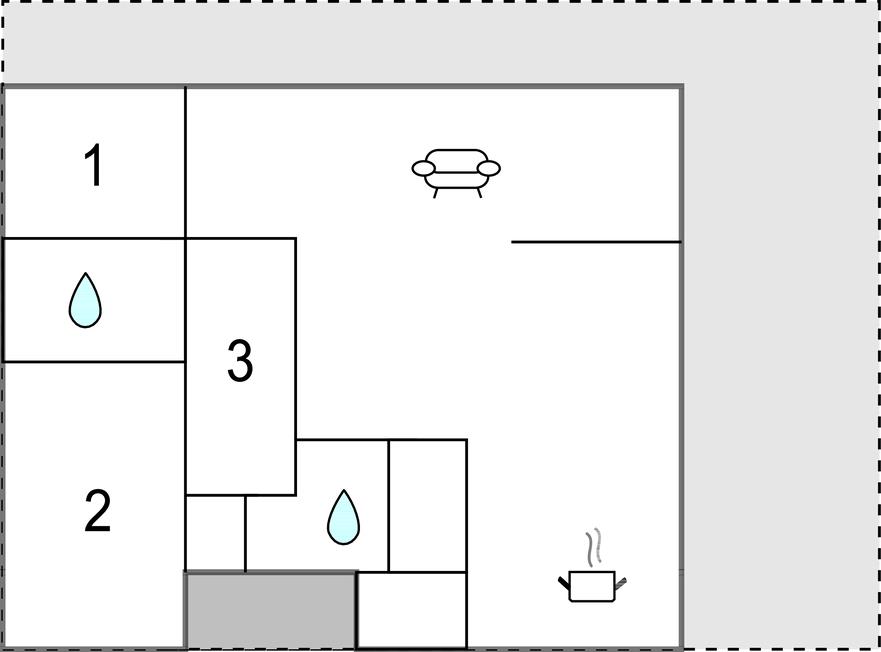 Badeværelse (nr. 1) - WC. Varmt og koldt vand. Bruser