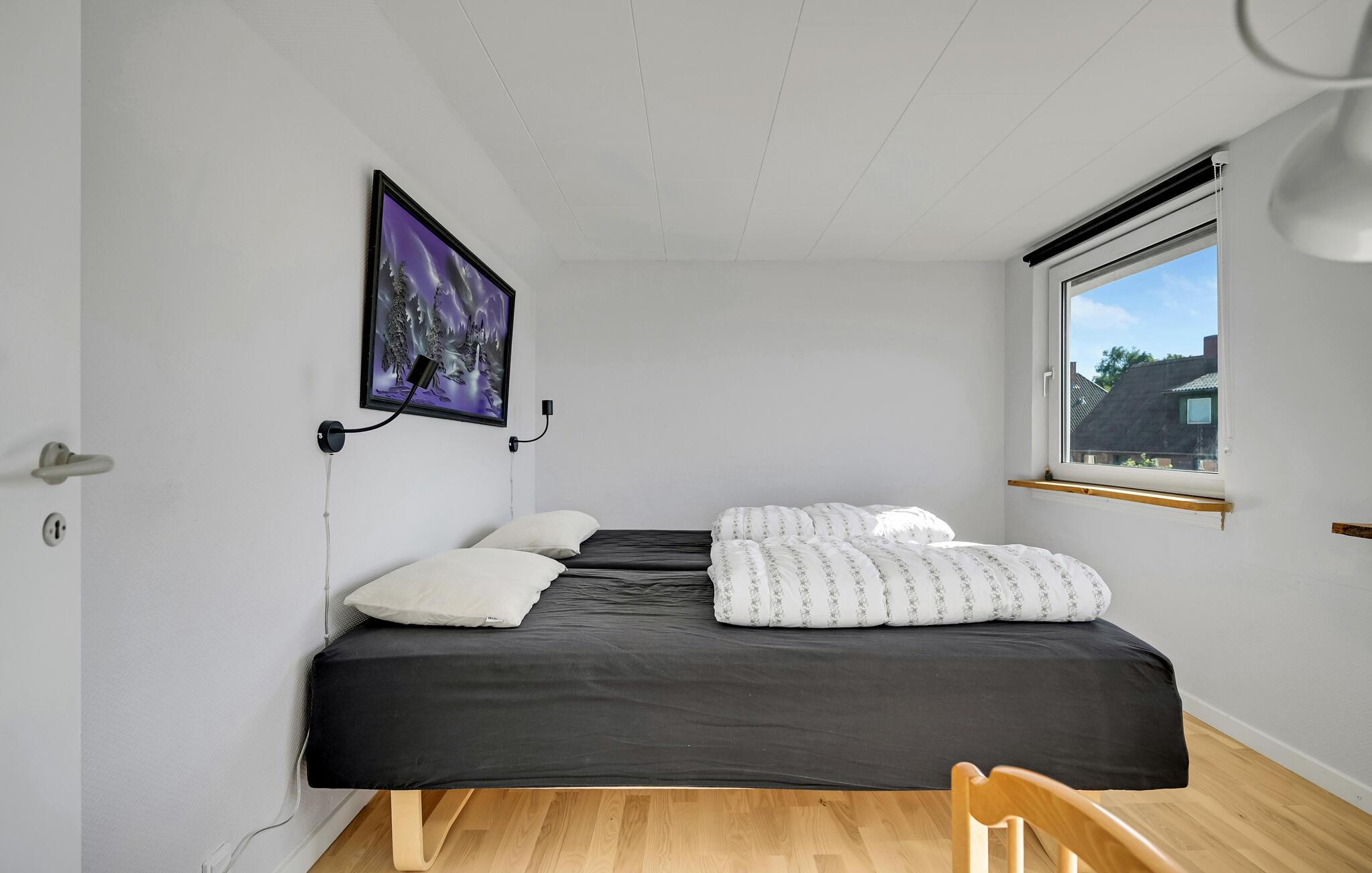 Hold en afslappende ferie med familien i dette skønne feriehus, som ligger i Ørum. Huset er meget komfortabelt og byder ikke kun på moderne og fine faciliteter, men også et behageligt interiør med lækre løsninger. Nyd familietiden i stuen, hvor der venter hygge til de lange aftener med ild i brændeovnen og en god serie i fjernsynet. Haven byder også på hyggelige steder at samles. Tilbered jeres ferieretter på gasgrillen og dæk op til dagens måltider i den smukt anlagte have.
