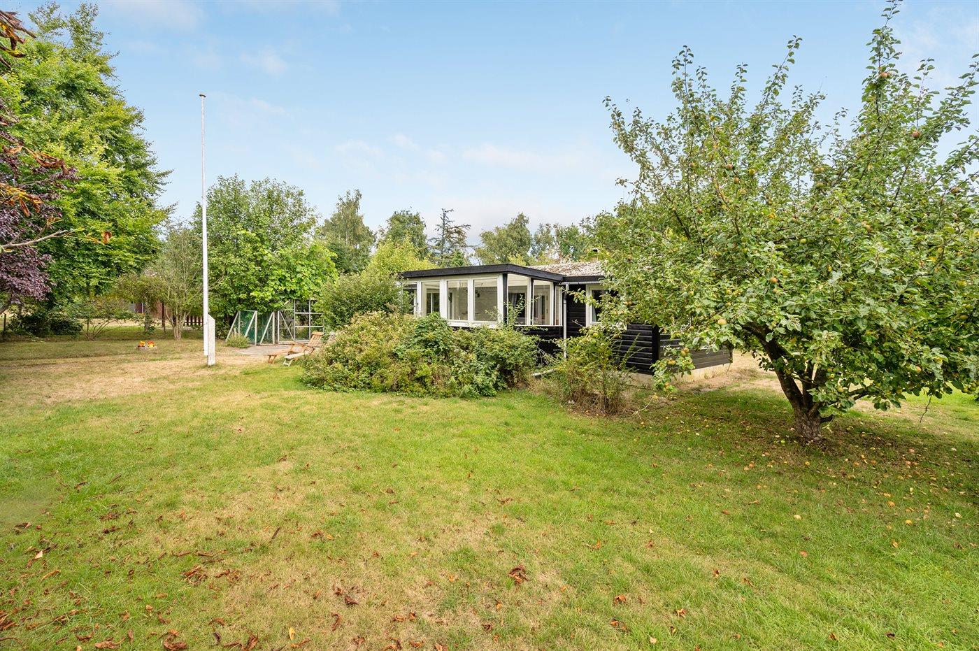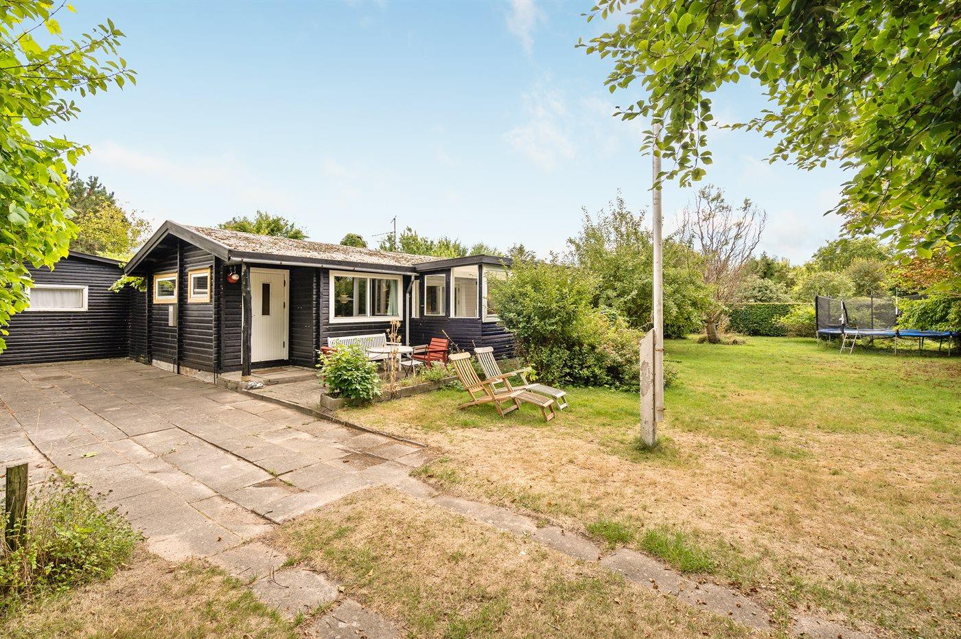 Charmerende sommerhus tæt på vandet med stor have, terrasse og bålplads, ideelt til familier med børn.