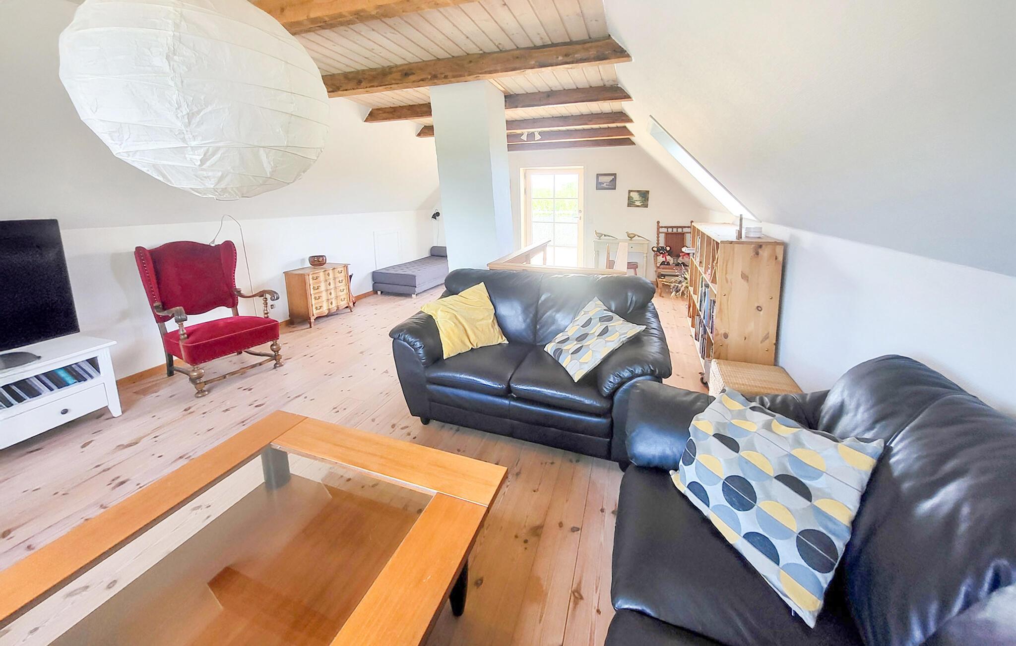 Velkommen til dette store og hjemlige feriehus, der tilbyder jeres store familie den ideelle feriebolig. Nyd jeres privatliv i soveværelserne i stueetagen eller lav mad sammen i køkkenet. På 1. sal byder en indbydende stue velkommen, hvor I kan hygge jer, se film eller spille brætspil. Den tilstødende solterrasse er det perfekte sted at slikke sol eller nyde jeres yndlingsretter i det fri med udsigt over fjorden.