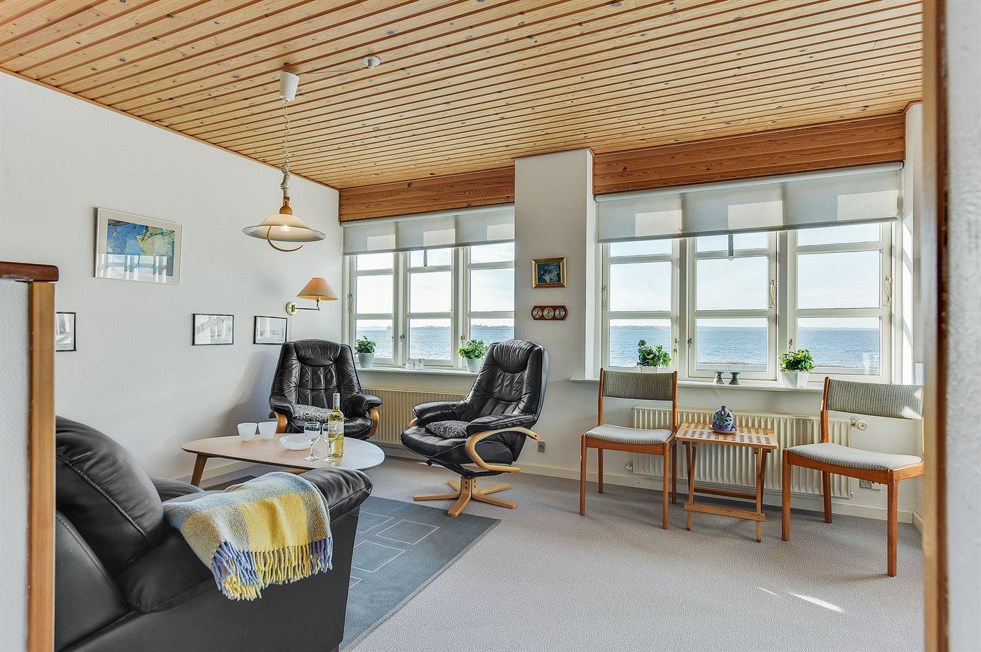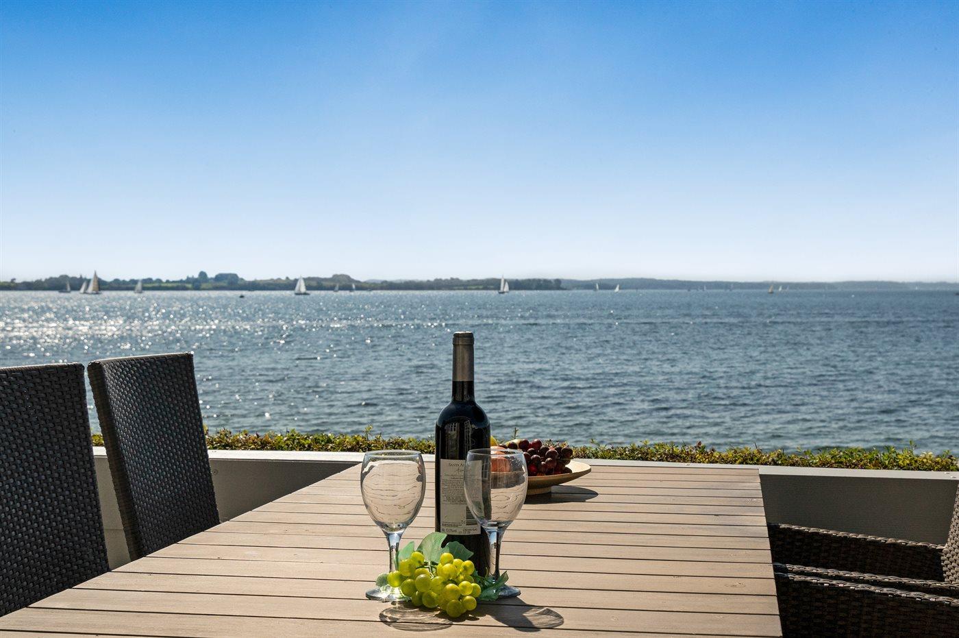Dejligt sommerhus med panoramaudsigt kun 5 m fra vandet i Egernsund.
