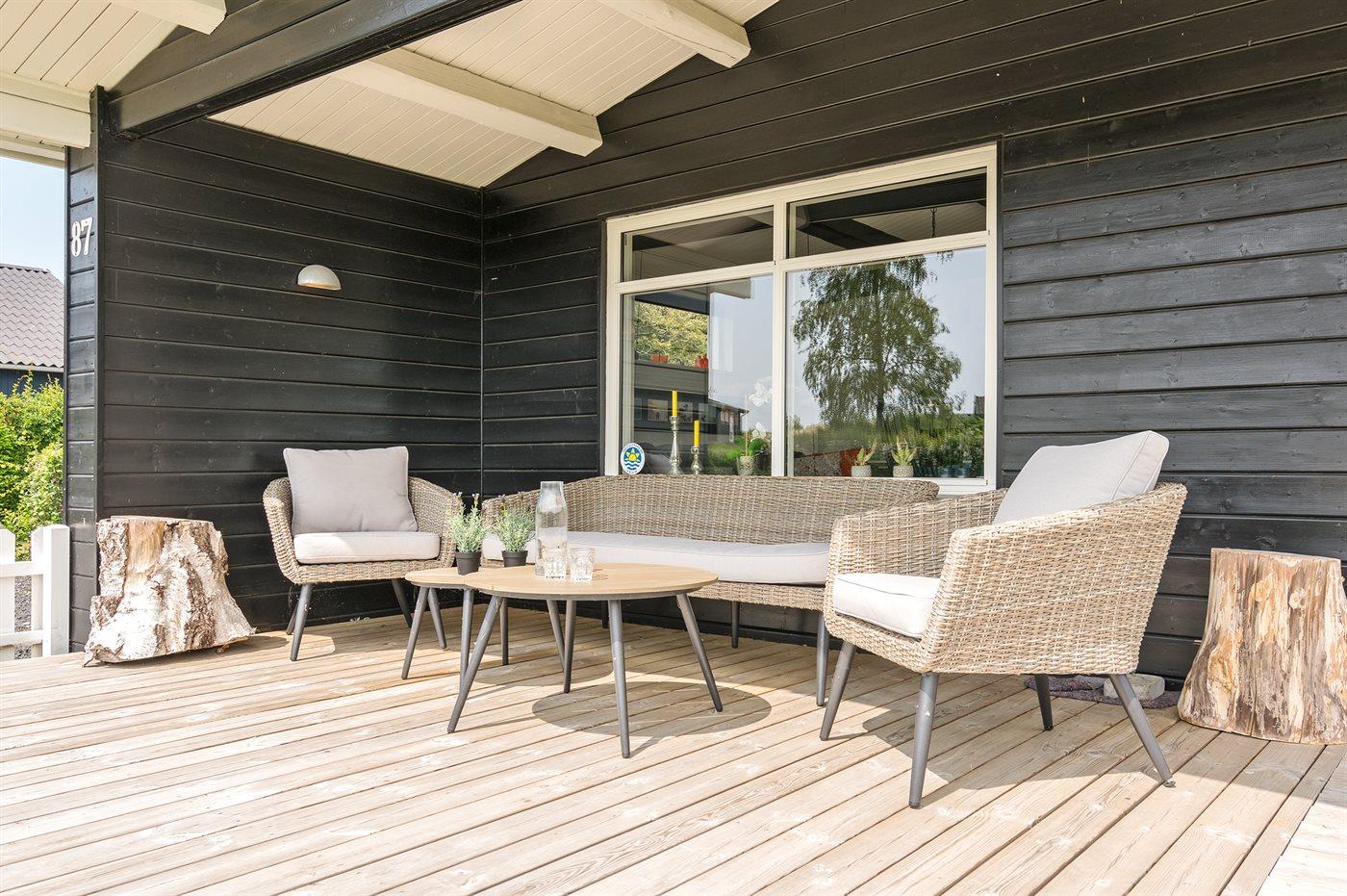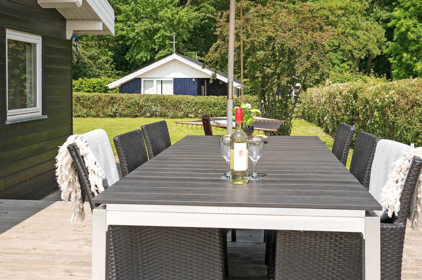 Ferieboligen er beliggende på en 803 m² stor havegrund. Der er 400 m til fjorden. Nærmeste forretning er beliggende i en afstand af 3400 m. Til ferieboligen hører 40 m² terrasseareal. Desuden er der 8 m² overdækket terrasse. Grill til rådighed. Parkering ved ferieboligen.