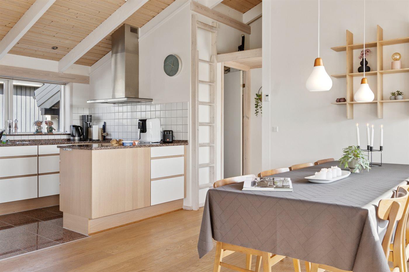 Køkkenet er udstyret med 1 køleskab. Der er 4 keramiske kogeplader, varmluftovn, mikrobølgeovn, Airfryer samt opvaskemaskine.