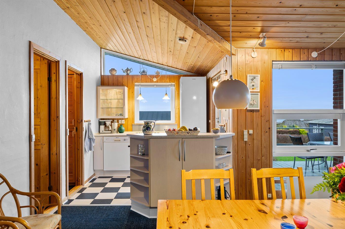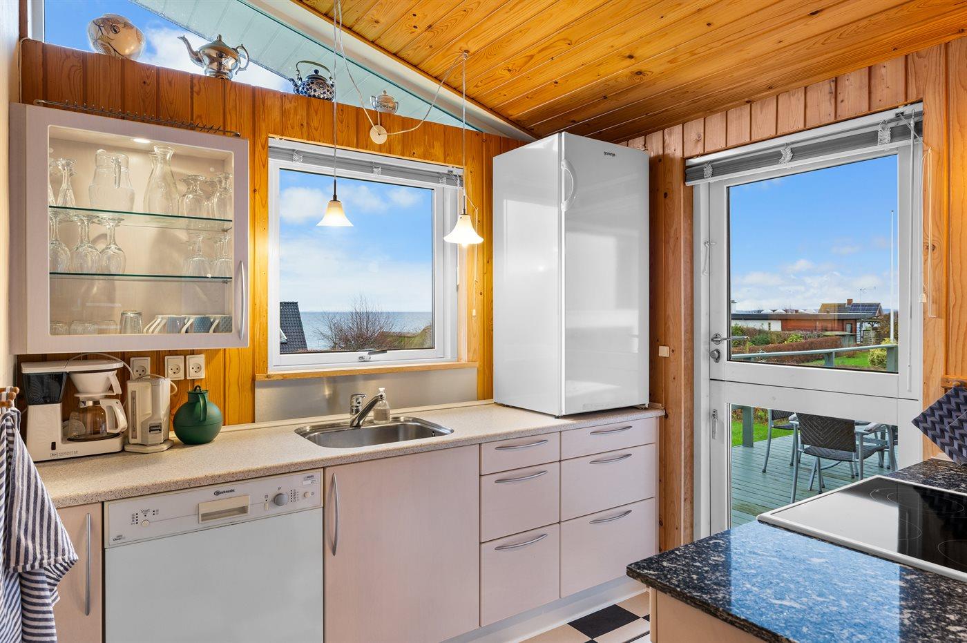 Køkkenet er udstyret med 1 køleskab. Der er 4 keramiske kogeplader, varmluftovn, mikrobølgeovn samt opvaskemaskine.