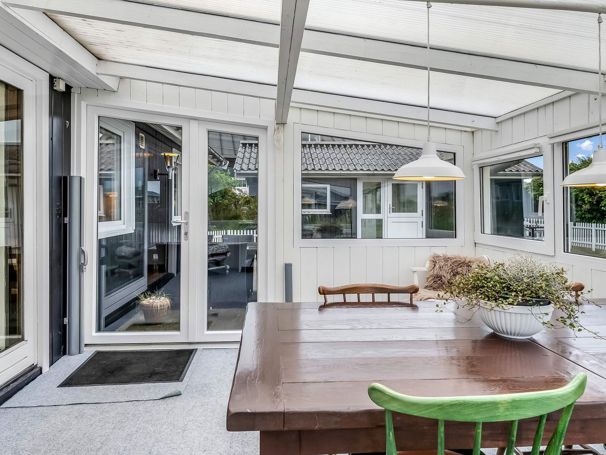 Grunden byder på flere udendørs terrasser, hvor man kan sidde og nyde solen, roen og lyden af havets brusen. Indvendigt er feriehuset lyst og indbydende indrettet med en rummelig stue, hvor der både er spiseplads og sofaafdeling omkring brændeovnen. Fra stuen er der direkte adgang til en lys udestue, som anvendes året rundt. Det hyggelige køkken er veludstyret med alt, hvad man har brug for under opholdet. Badeværelset er lyst og har behagelig gulvvarme.