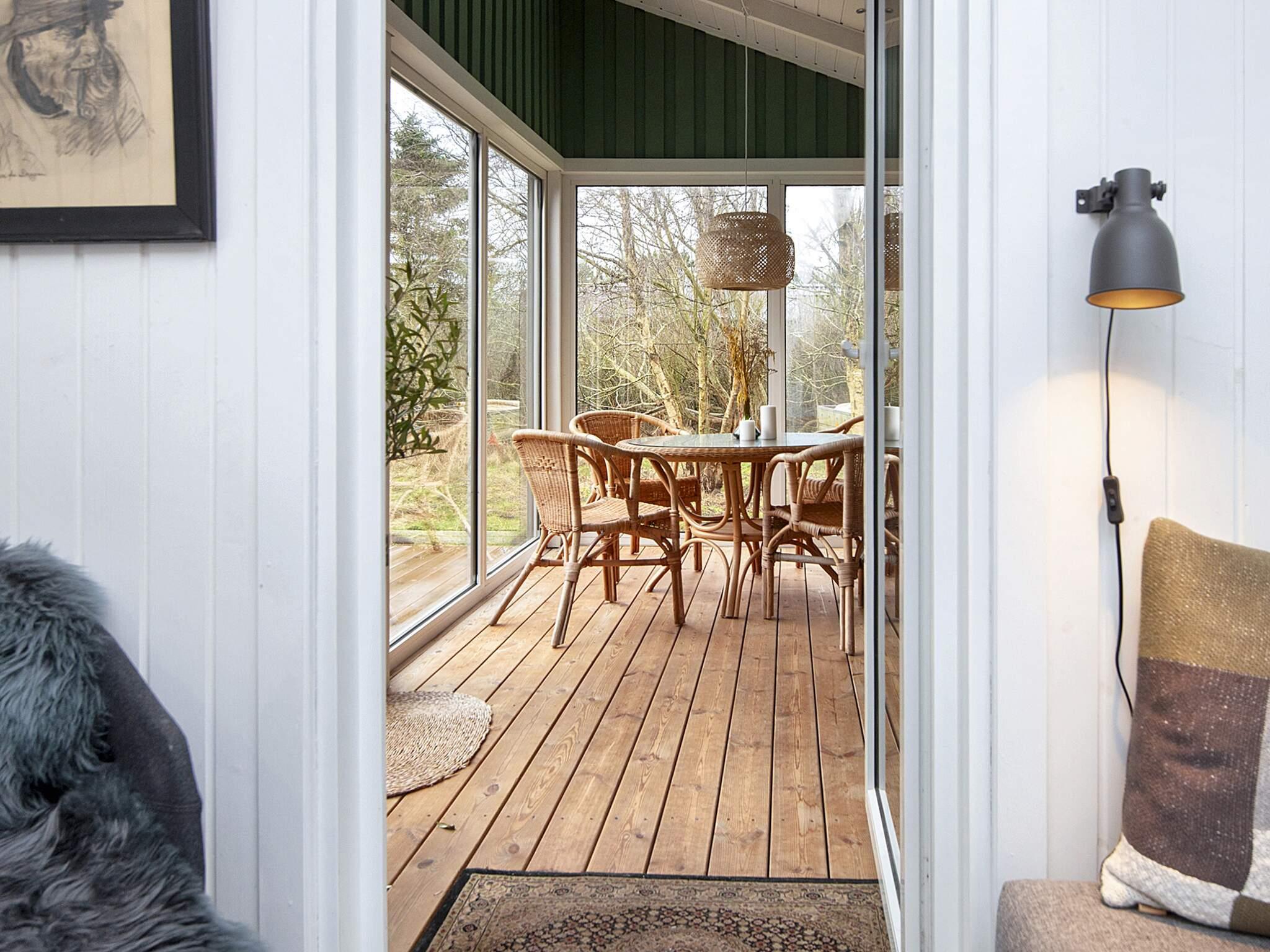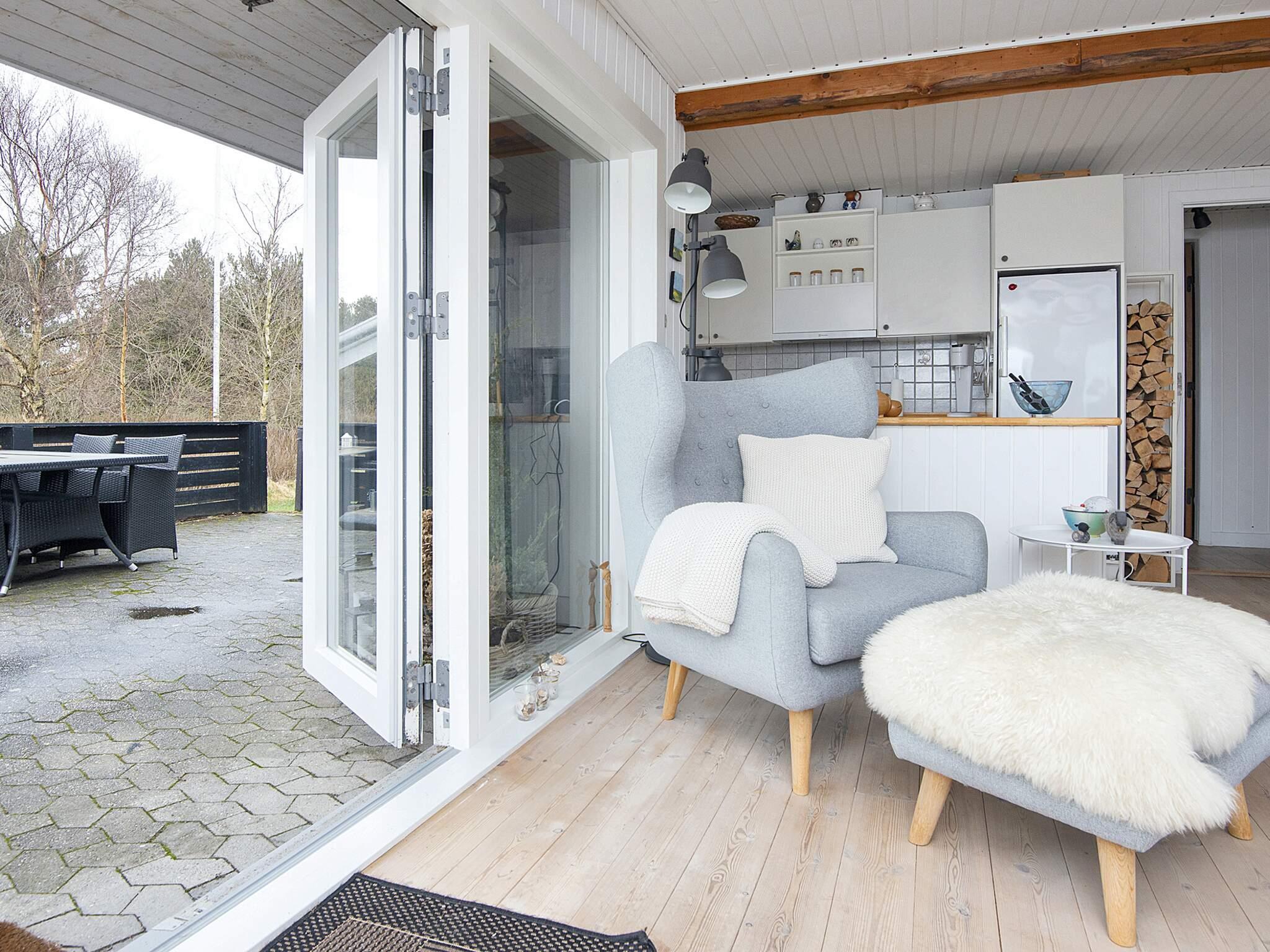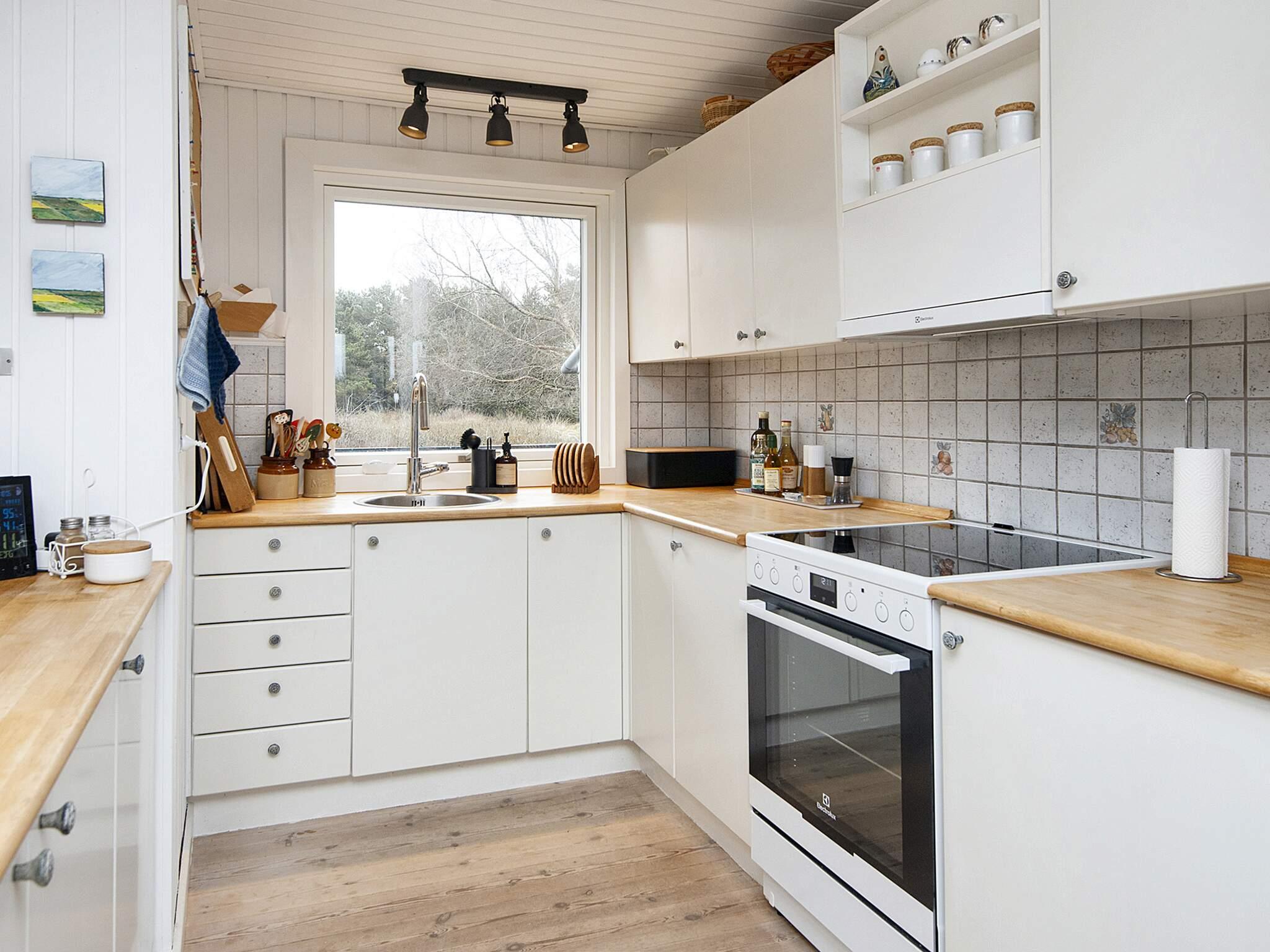Huset er hyggeligt og smagfuldt indrettet med et lyst opholdsrum, hvor køkken og stue er i åben forbindelse. Her sørger brændeovnen og varmepumpen for både varme og hygge – året rundt. I stuen er der fladskærms-TV med både danske og tyske kanaler, og med Chromecast kan du nemt streame dine egne film og serier.