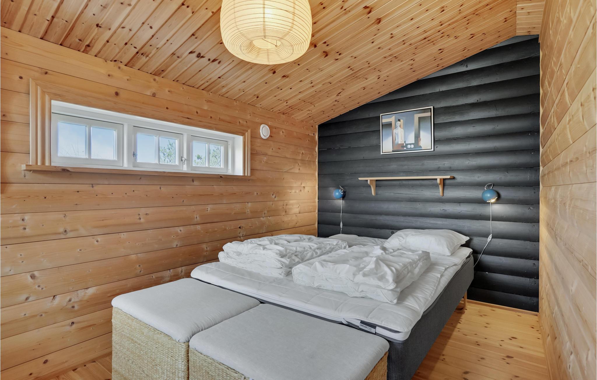 Midt i klitterne venter dette rummelige træhus på jeres familie og tilbyder jer oase af afslapning og velvære. Her kan I slappe af sammen og glemme hverdagens bekymringer. Den åbne og rummelige opholdsstue opfylder alle jeres ønsker. Lav mad sammen, eller slap af med en god bog i sofaerne med en knitrende ild i brændeovnen.