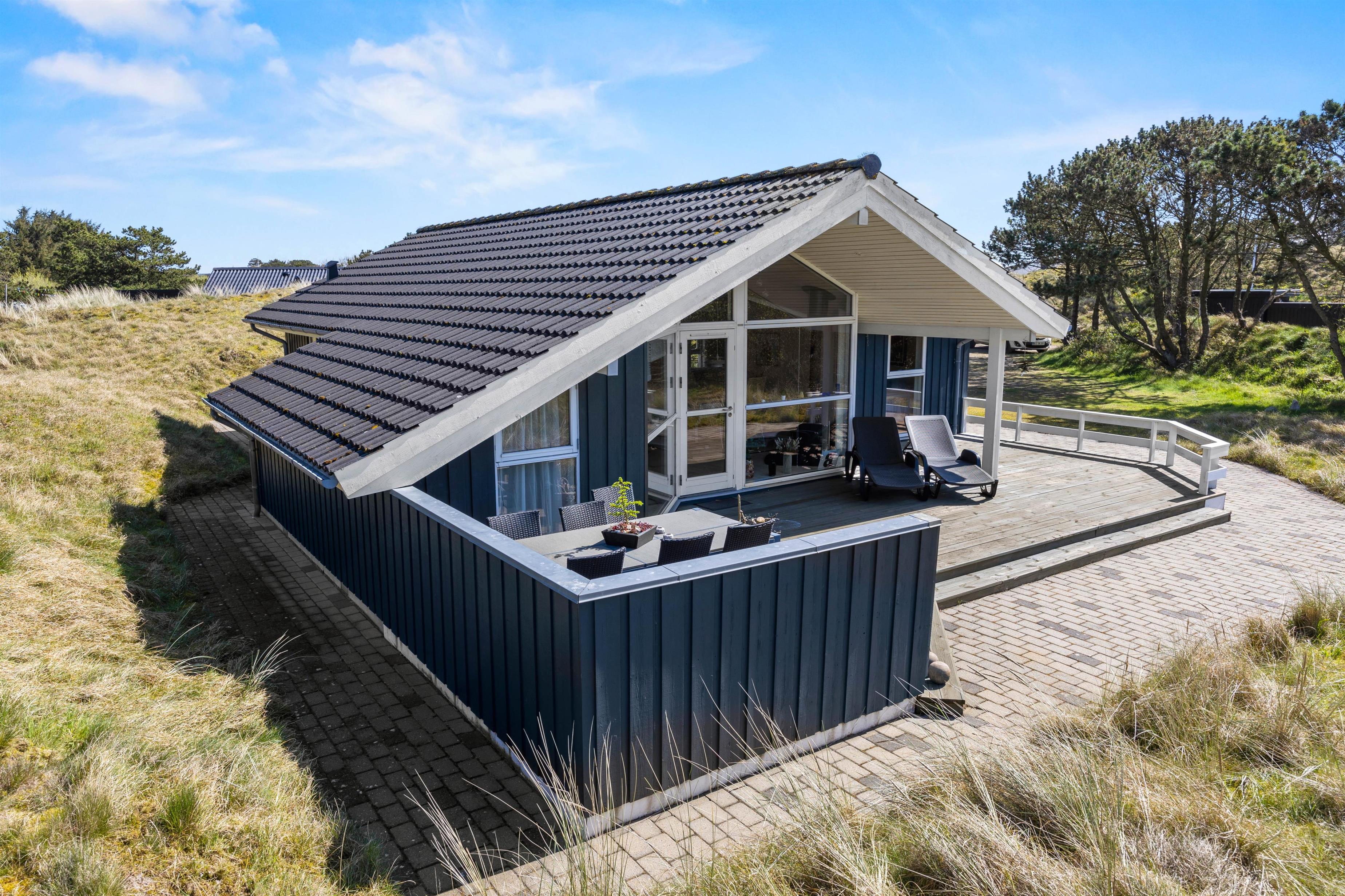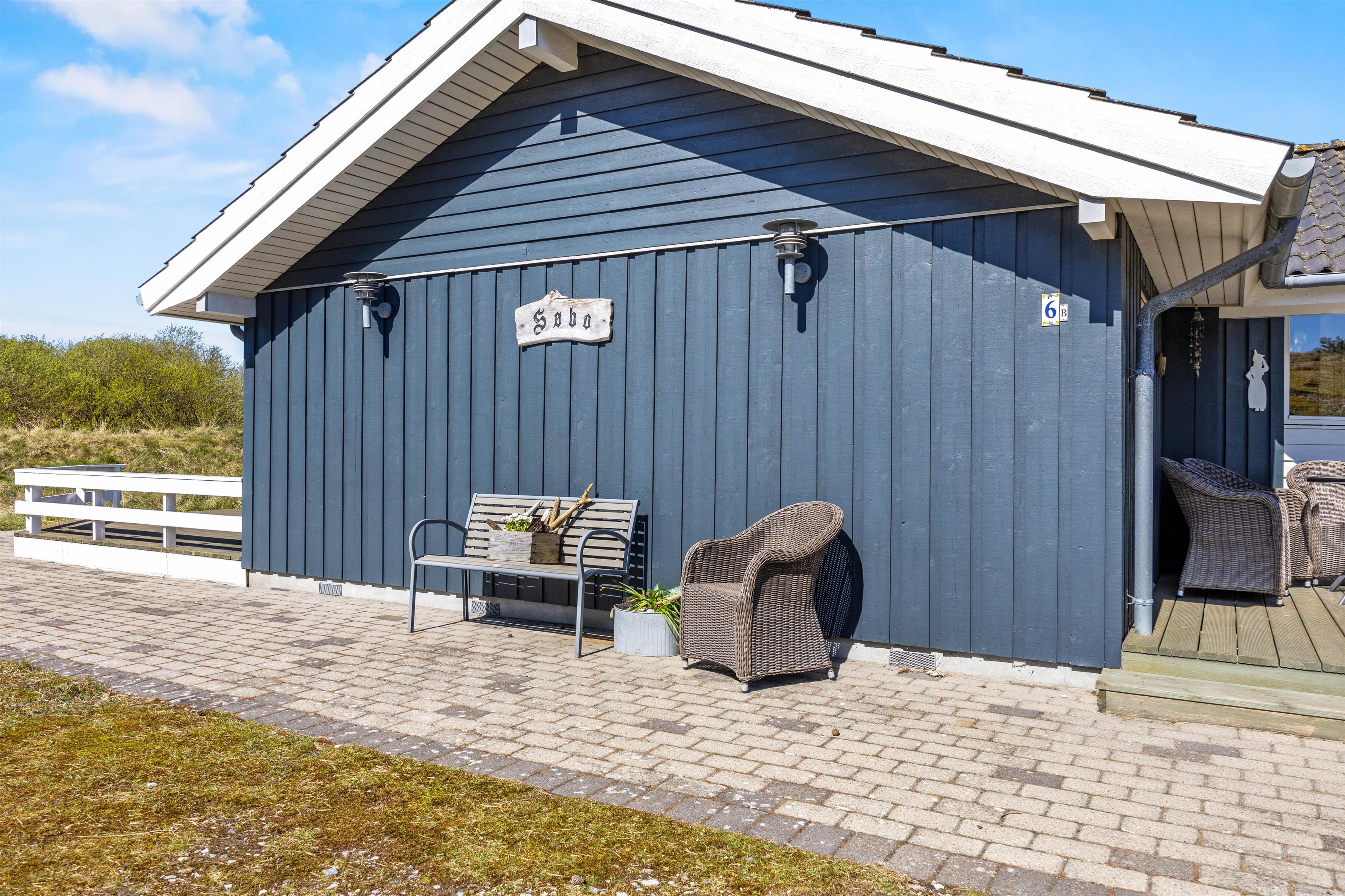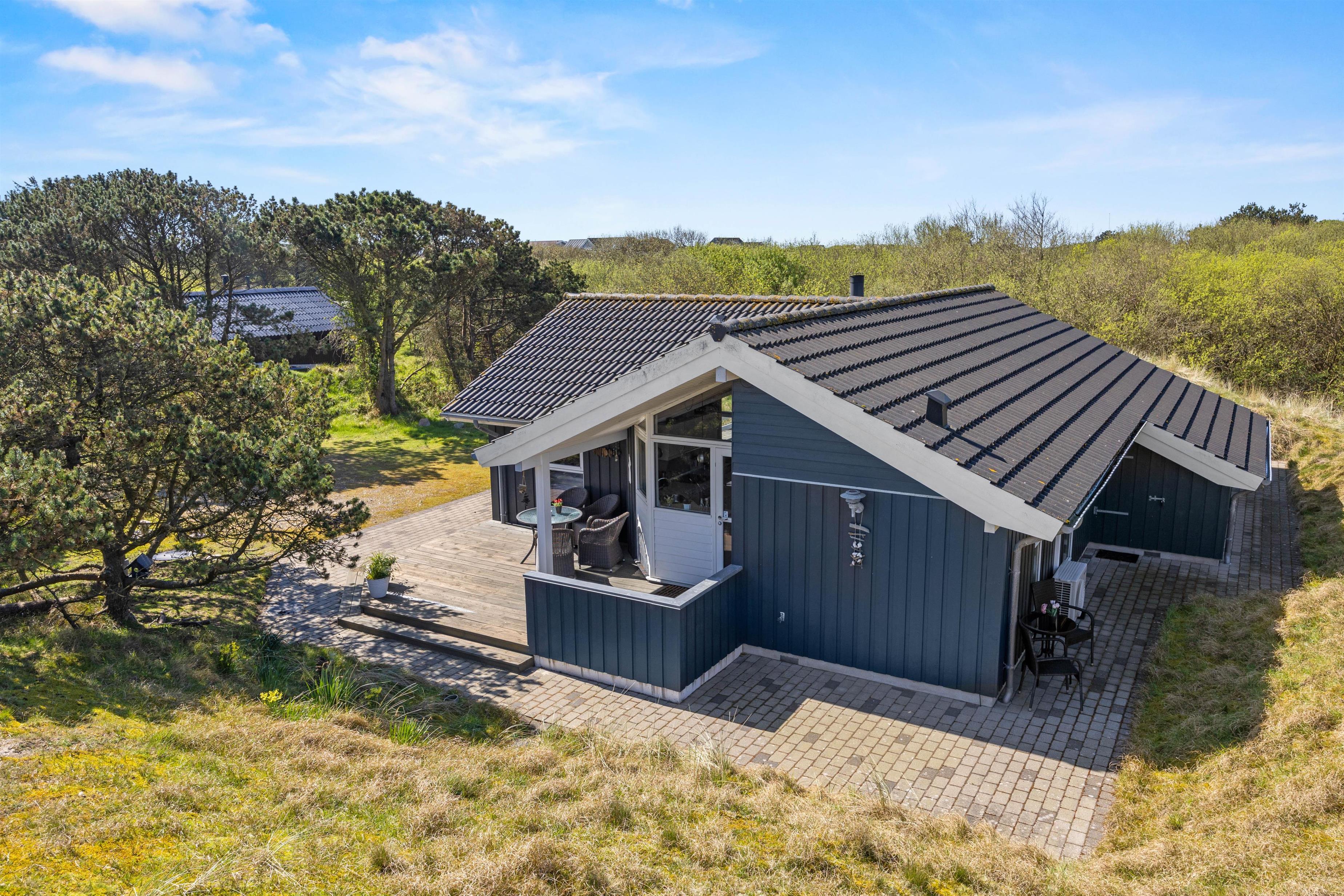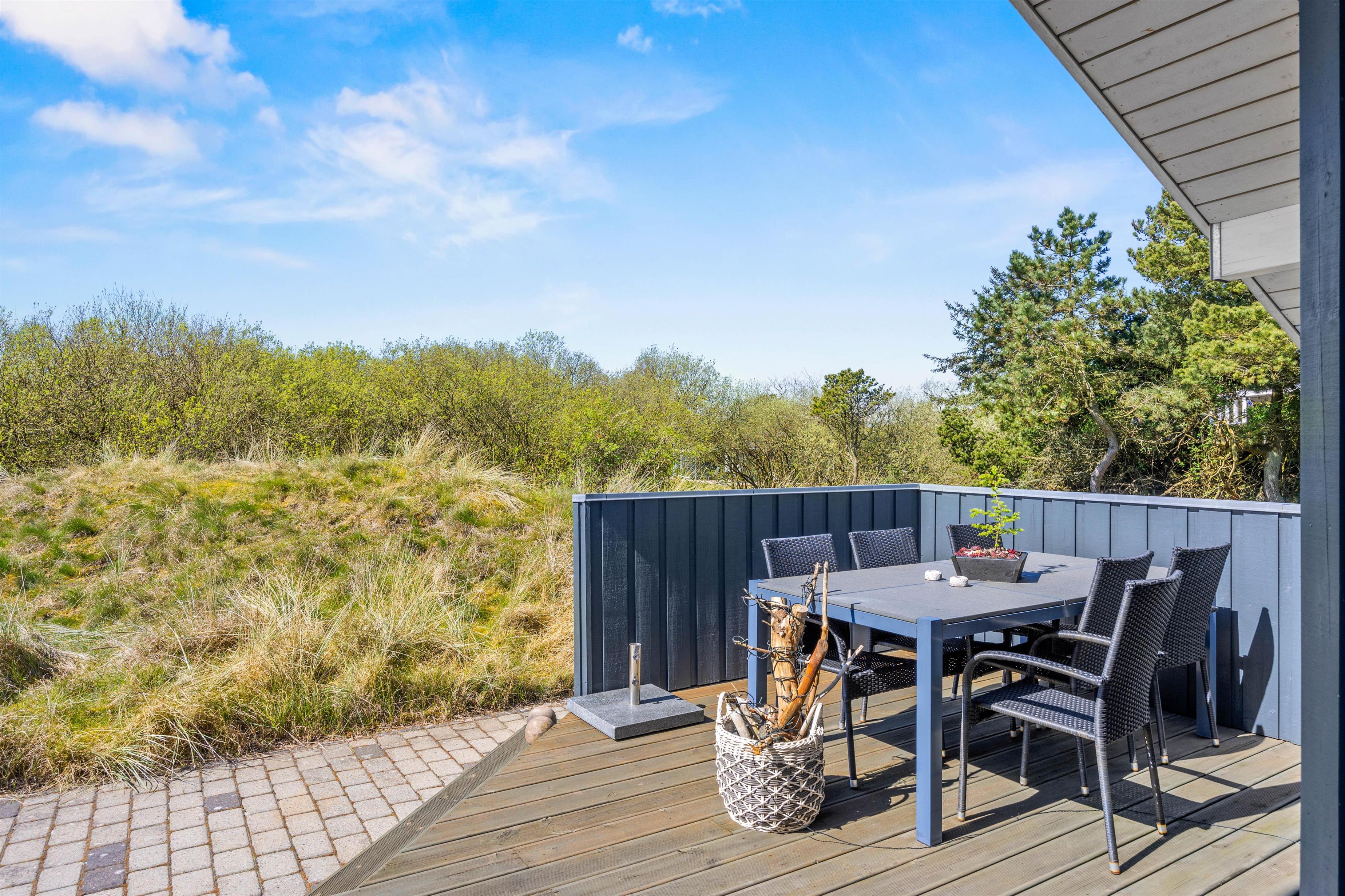 På den ugenerede og læfyldte træterrasse, kan I læne jer tilbage i solvognene med en god bog og lytte til naturens lyde. Hele grundstykket er kuperet og godt afskærmet, så I kan nyde den friske luft fuldstændig uforstyrret. Her er der også garanti for besøg af Fanøs rige dyreliv helt tæt på, når kaniner, fasaner og råvildt kigger forbi. På terrassen venter jer ligeledes havemøbler og en grill, så når sulten melder sig, kan I blot tænde op i grillen, dække bordet og nyde lækre lokale specialiteter tilberedt under åben himmel. Det er den perfekte måde at afslutte en sommeraften på.
