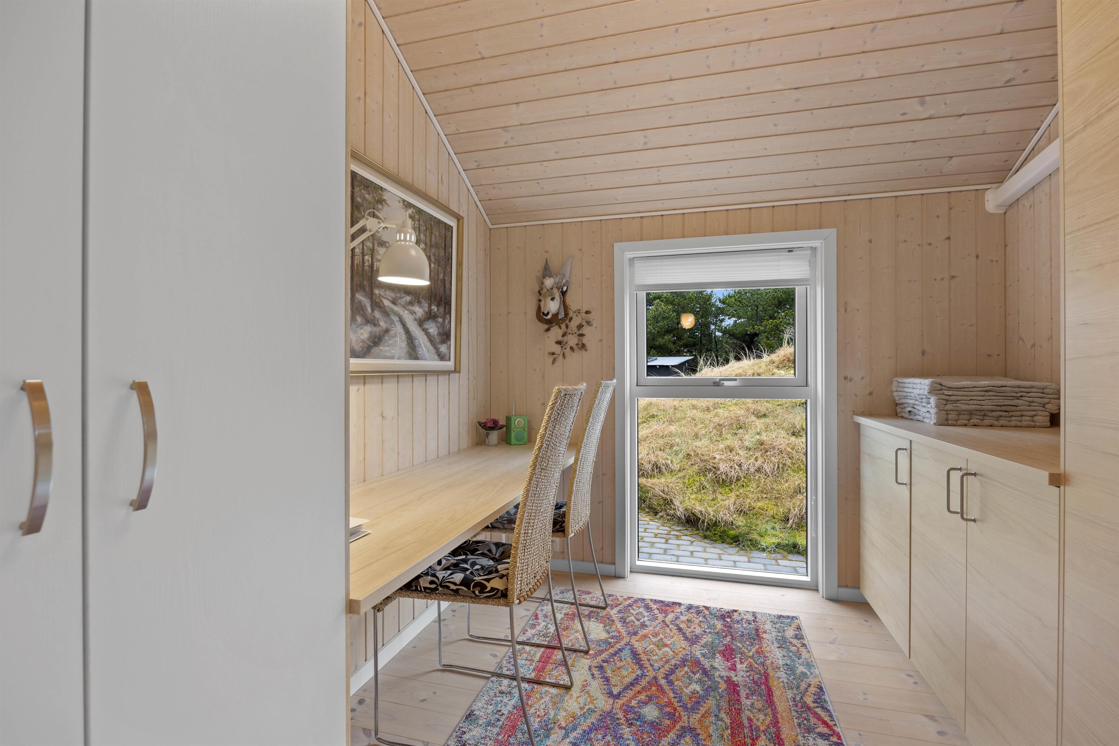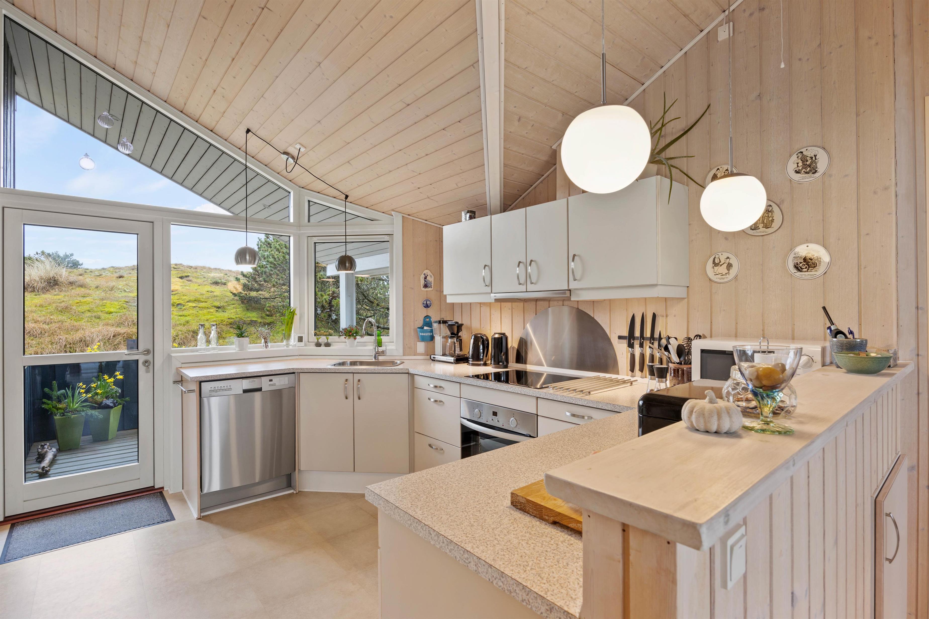 Det åbne opholdsrum med køkken og spiseplads indbyder til samvær, hvor den lyse og lette indretning fuldender ferieatmosfæren. Det veludstyrede køkken med opvaskemaskine og induktionskomfur gør madlavningen til en leg. Måske I kunne starte dagen med duften af friskbrygget kaffe og friskbagte kanelsnegle?