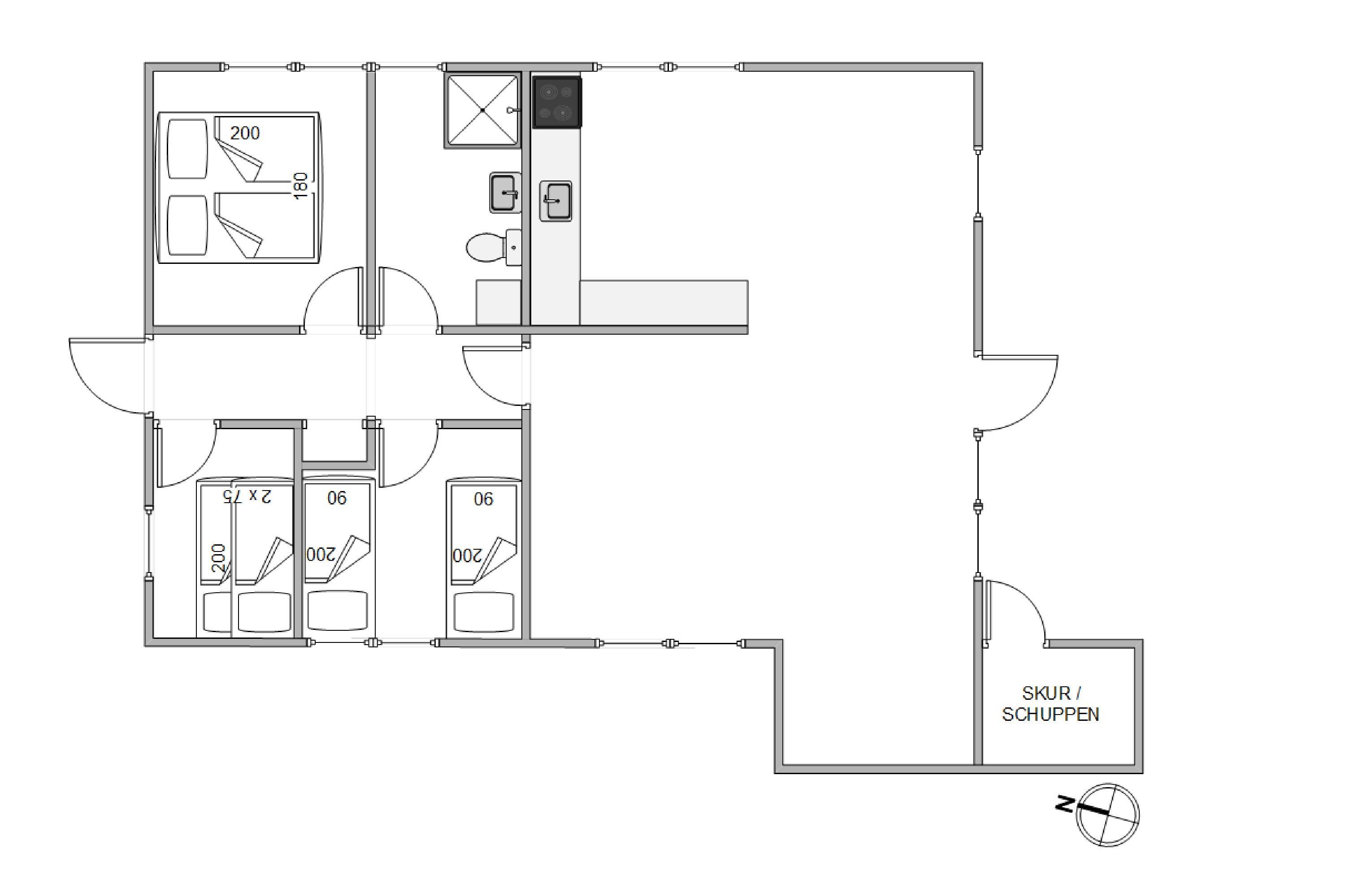 Udover alrummet byder det 72 m2 store sommerhus på 3 soverum, hvoraf et er med dobbeltseng. De resterende værelser har hver en enkeltseng. Derudover er der et badeværelse med bruseniche og gulvvarme, så I aldrig får kolde fødder i vintermånederne.