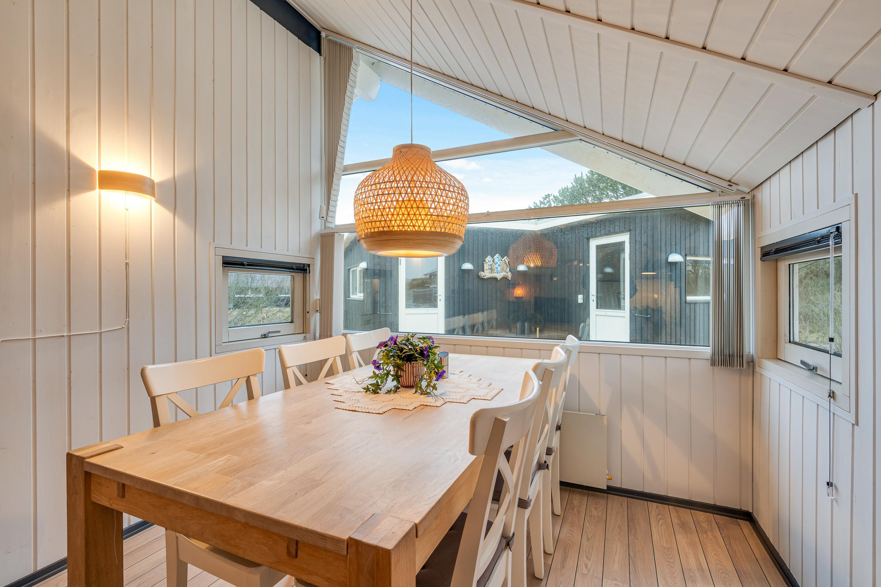 Feriehusets badeværelse er udstyret med gulvvarme, som sørger for lune fødder i de kolde måneder. Deslige er der også en sauna, hvor I kan slappe af og få varmet musklerne igennem efter en god travetur på stranden.