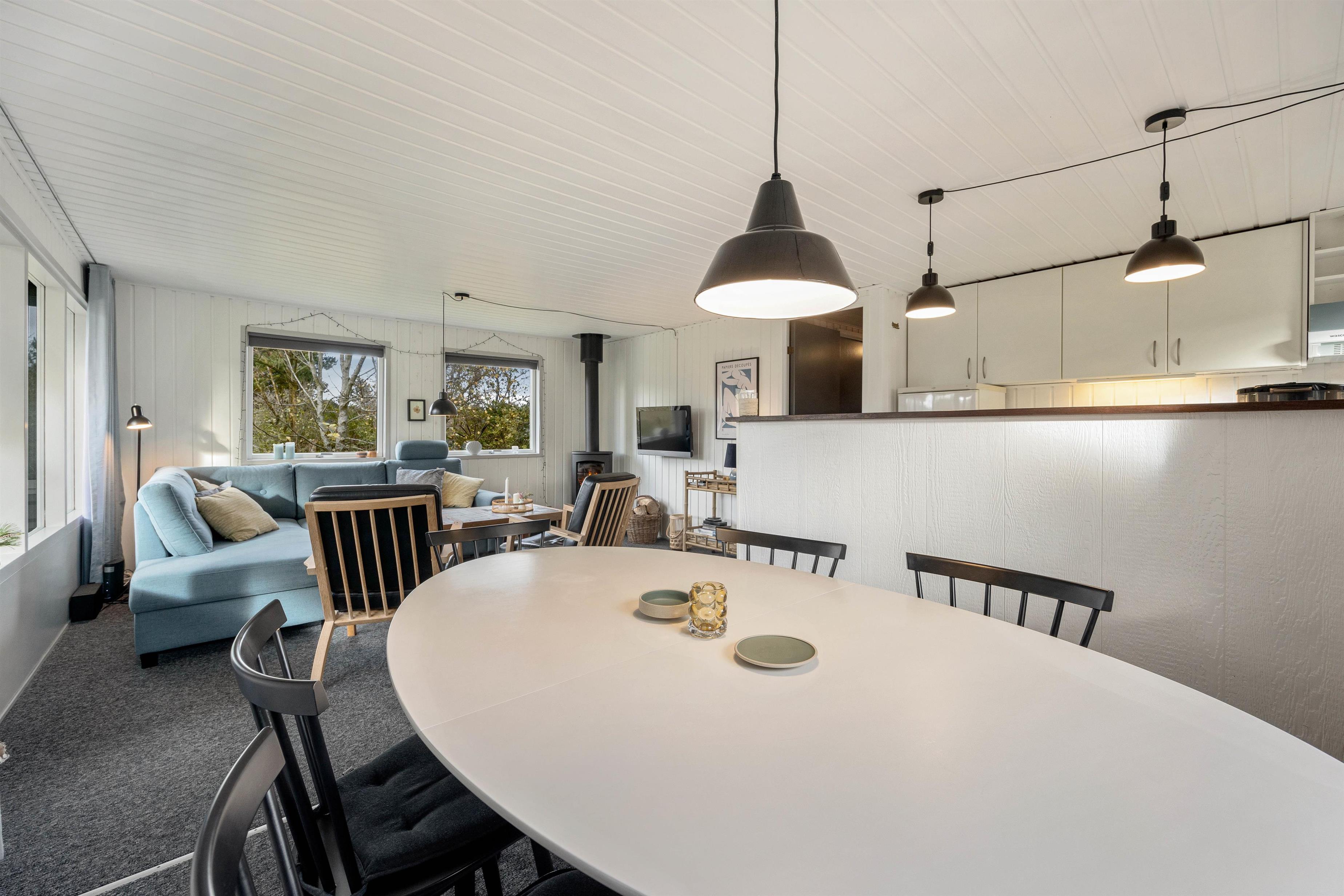 I det klassiske feriehus på Store Klit 65 oser der af hygge og afslapning, her kan I nyde hinandens samvær i køkkenalrummet med sofahjørne og hvilestole foran den knitrende brændeovn, mens der laves mad i køkkenet. På badeværelset er der gulvvarme, og der er også praktiske faciliteter som vaskemaskine og tørretumbler ude i bryggerset.