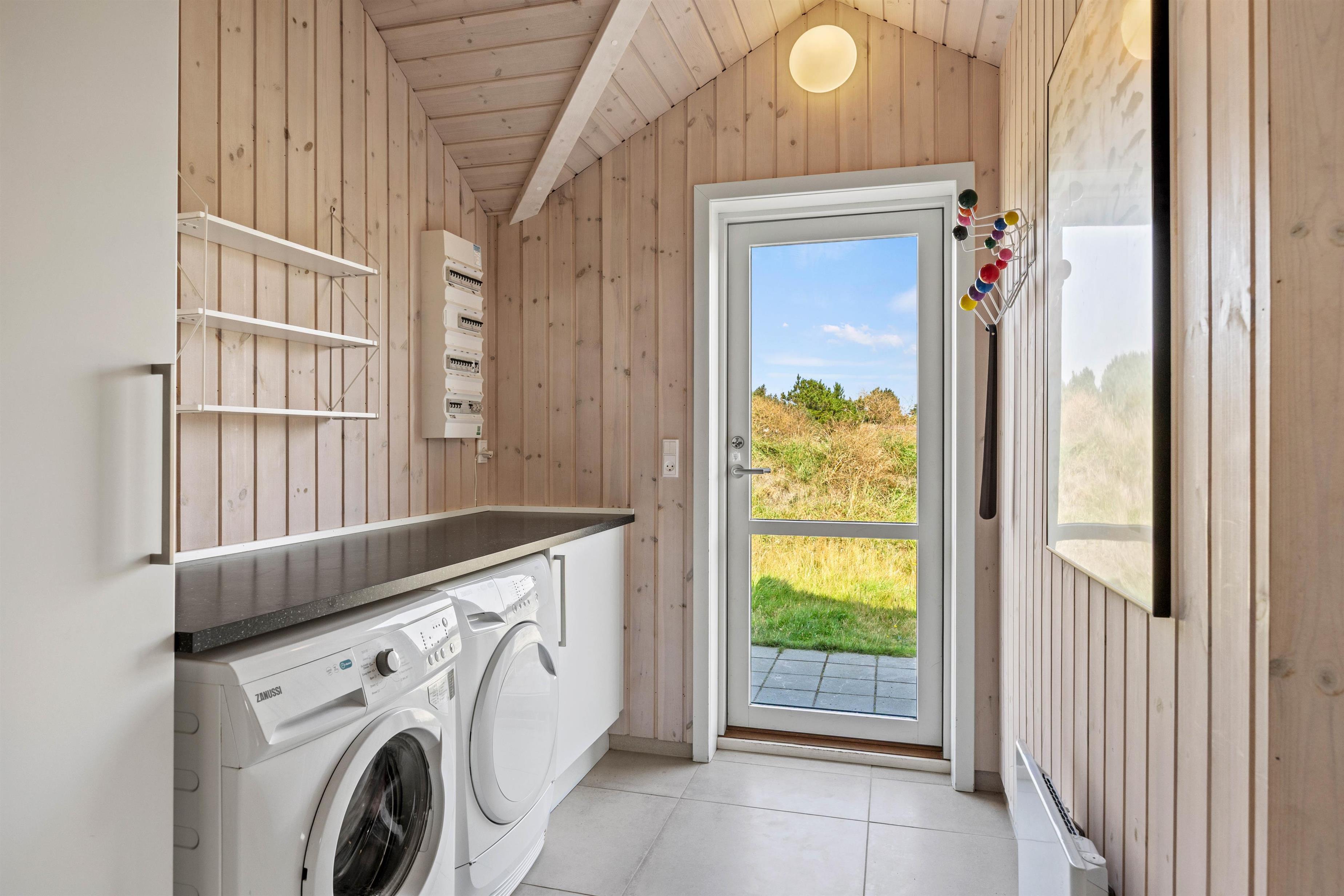 Feriehuset har 4 soveværelser med 4 dobbeltsenge, bestående af i alt 8 enkeltsenge, dertil hems med 3 børnesovepladser, og sommerhuset har 2 badeværelser – begge med gulvvarme. Til afslappende stunder er der både sauna og et spabad til rådighed. Køkkenet indeholder alt, hvad I behøver for at forkæle hinanden med lækre hjemmelavede måltider, herunder induktionskomfur og opvaskemaskine og vinkøleskab. Der er også vaskemaskine og tørretumbler i feriehuset, hvis I får brug for det. Som et ekstra plus har feriehuset et aktivitetsrum med billardbord, bordtennis, elektronisk dart og stort TV mv, der står til jeres rådighed.