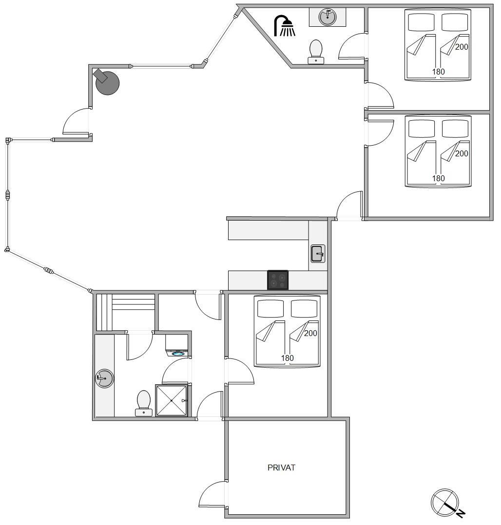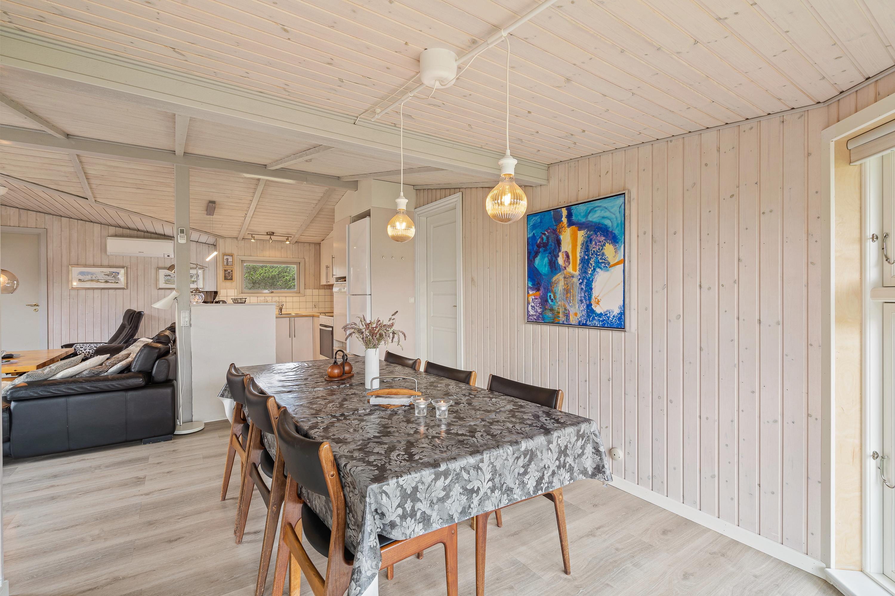 Feriehuset blev i 2018 delvist renoveret og fremstår lyst og rummeligt med en god rumfordeling og indretning. Hjertet af feriehuset er det store opholdsrum med spiseplads, opholdsstue og køkken med opvaskemaskine i et. Her er der plads til familiehygge og masser af aktiviteter.