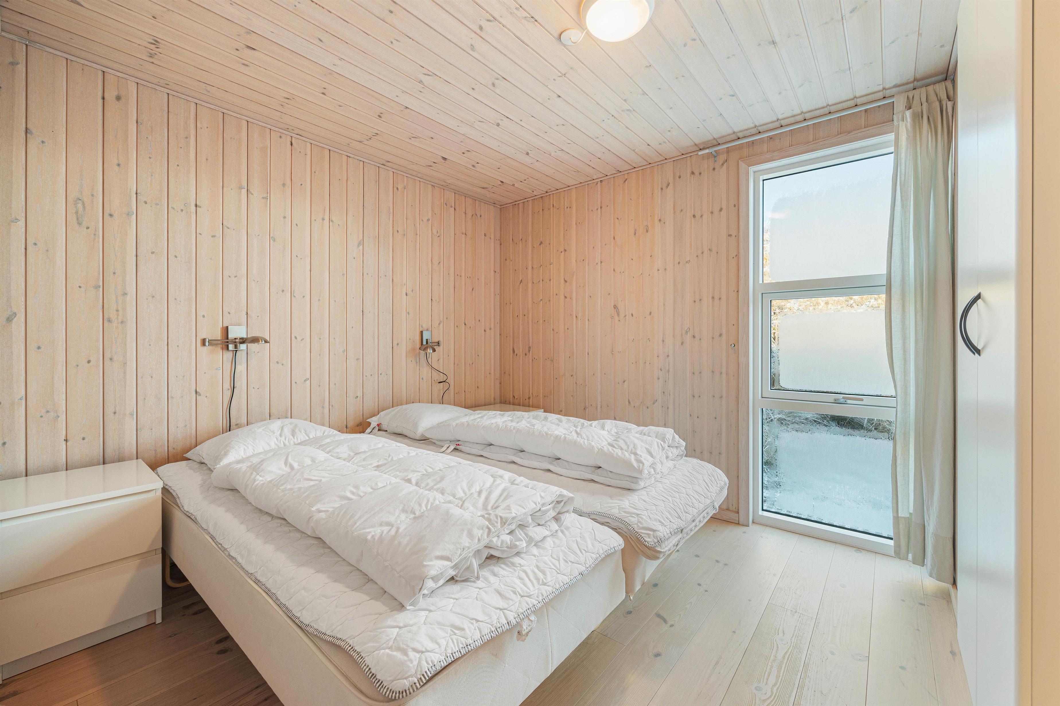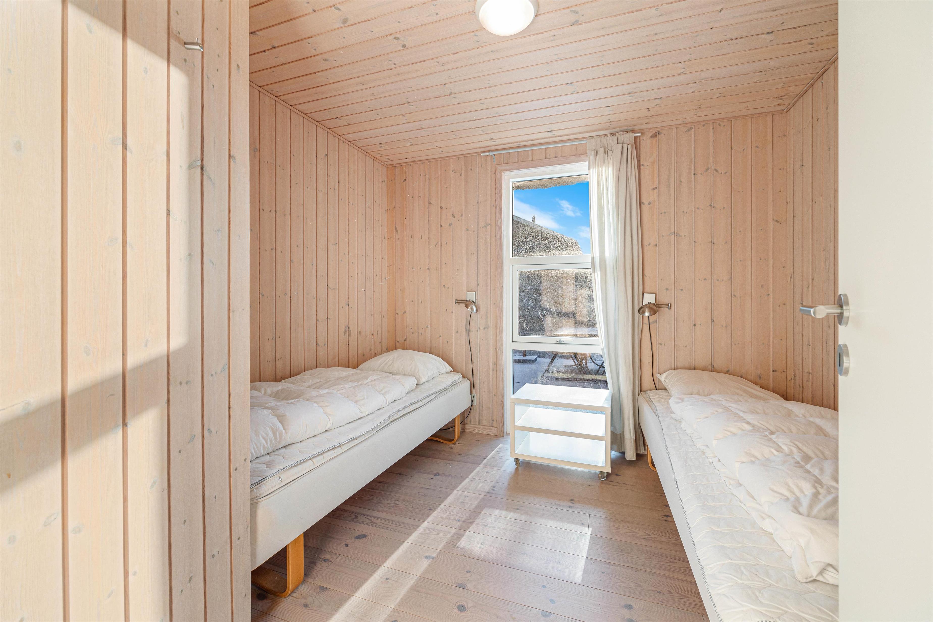 Der er i alt 4 soveværelser på Søndervænget 3 i Rindby. Sovepladserne fordeler sig på 6 sovepladser med to dobbeltsenge og to enkeltsenge.