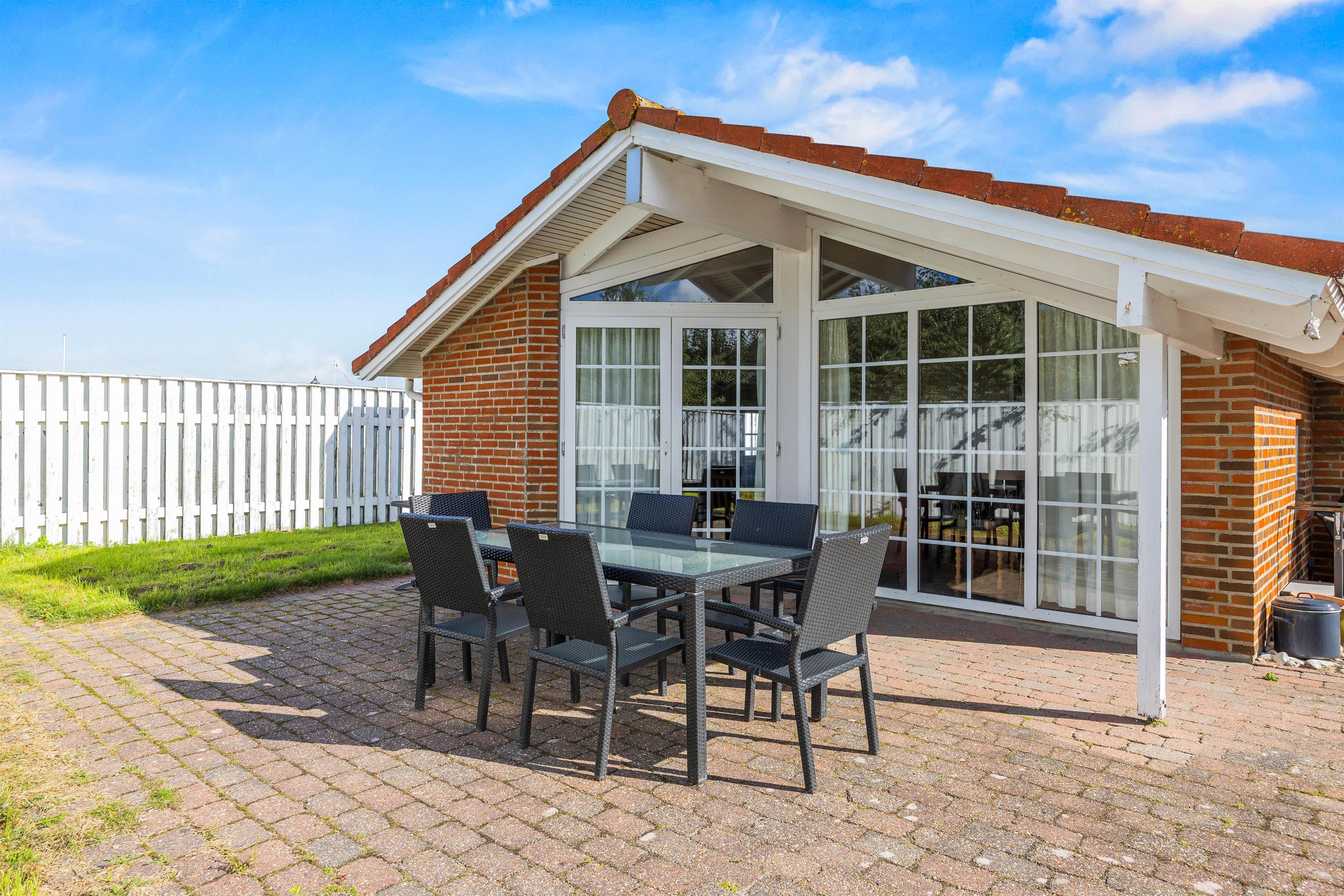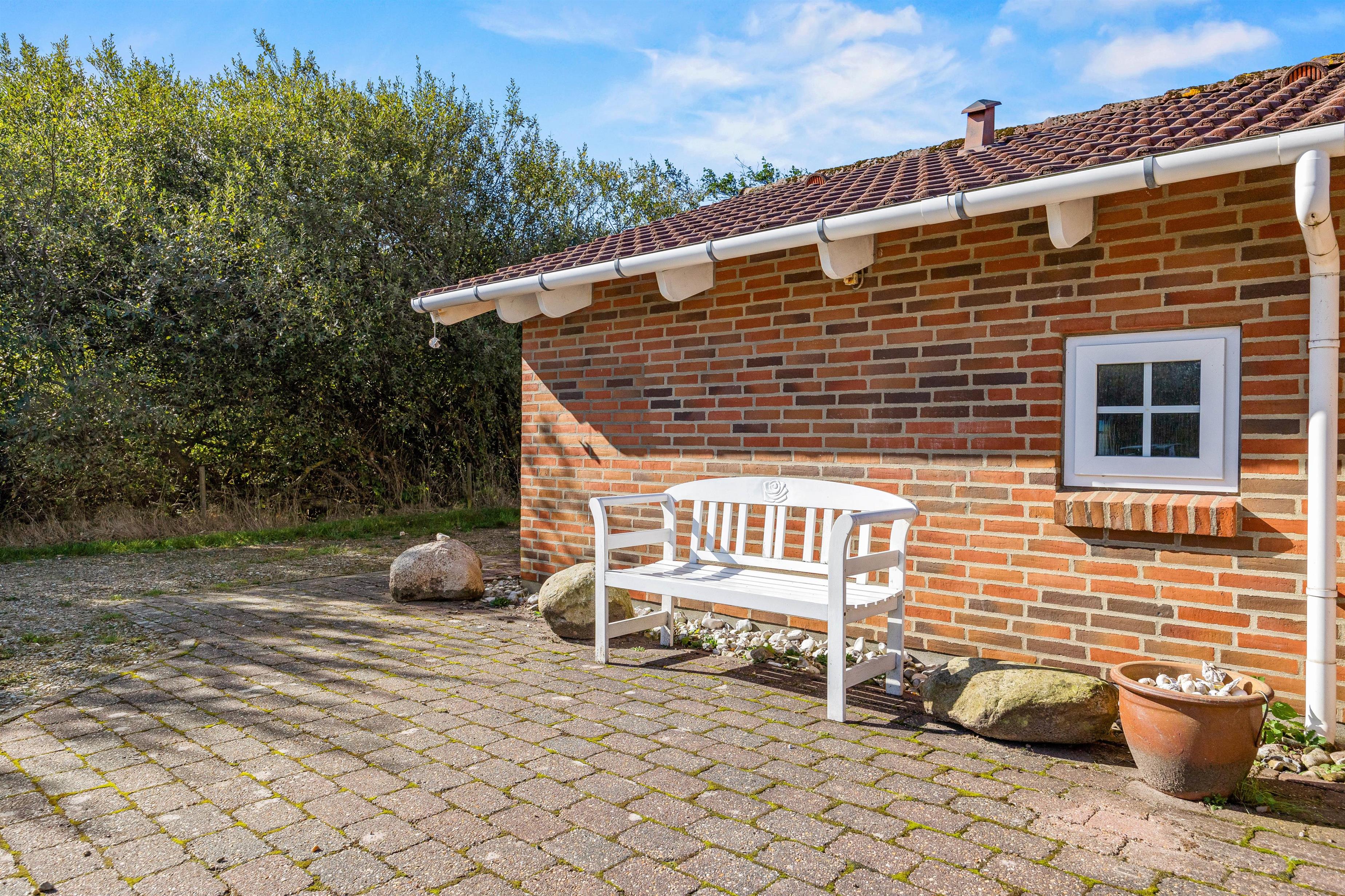 Sommerhuset ligger på en smuk naturgrund med en lille græsplæne og 2 dejlige terrasser, hvor I kan nyde de varme sommerdage. Begge terrasser er delvist overdækkede, hvilket er praktisk i tilfælde af en byge. Om aftenen kan I tilberede et lækkert måltid med saftige bøffer på sommerhusets grill, mens børnene brænder krudt af på plænen.
