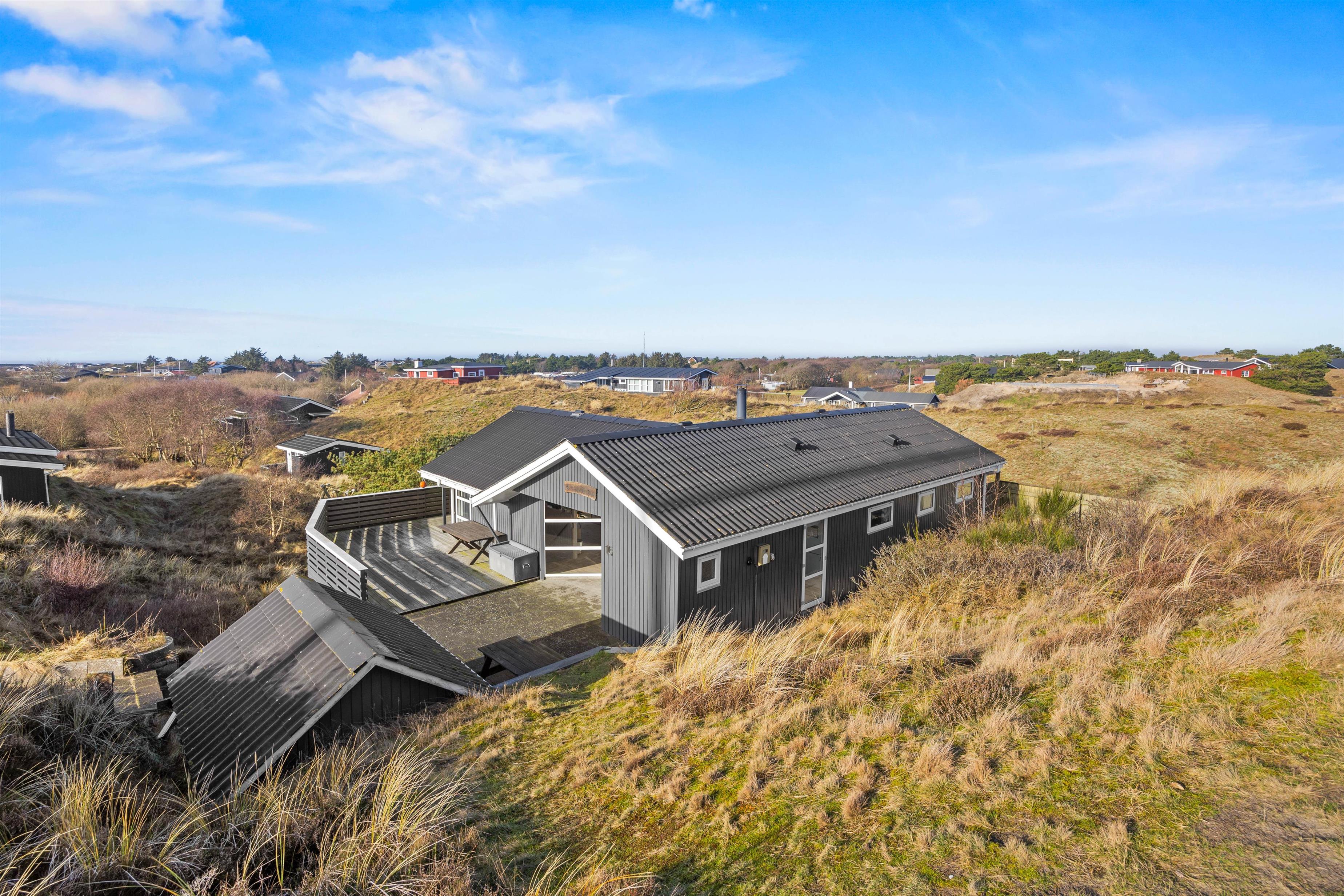 Dette charmerende sommerhus i Rindby Strand har en dejlig udsigt og god beliggenhed for enden af en blind vej, hvorfra der hverken er langt til stranden og indkøb. Sommerhuset på Vagtbjergvej 16 kan huse op til 8 feriegæster samt 1 hund. Et lyst og velindrettet feriehus ideelt til den store familie eller ferie med vennerne. Vesterhavet finder I små 650 meter herfra.