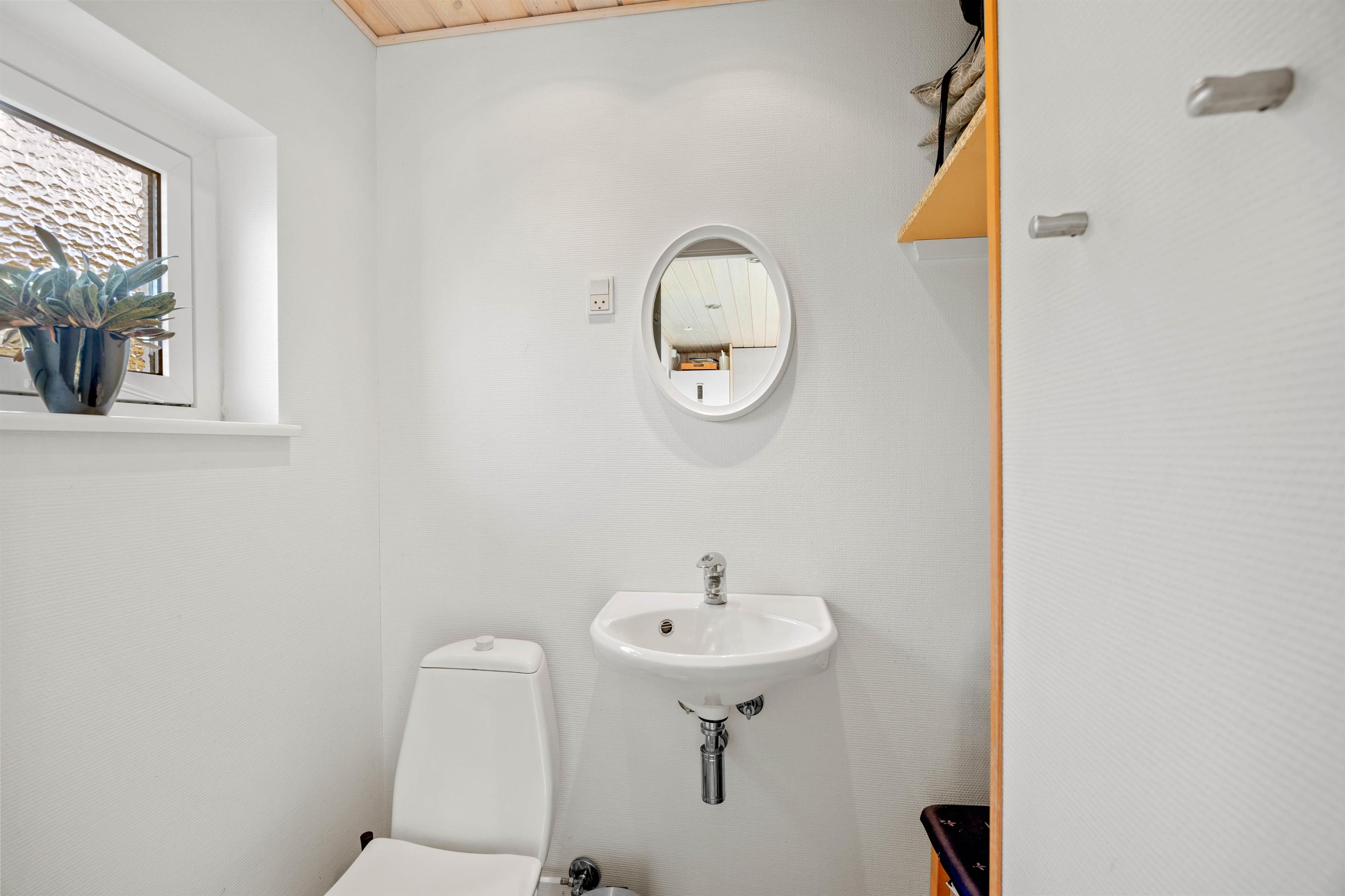 Feriehuset rummer hele 2 badeværelser samt 1 gæstetoilet – alle 3 med gulvvarme. På det største badeværelse finder I både sauna og boblebad, hvor I kan forkæle jer selv og glemme hverdagen for en stund. Skønt er her både en energibesparende varmepumpe plus vaskemaskine og tørretumbler, der hjælper med de praktiske gøremål.