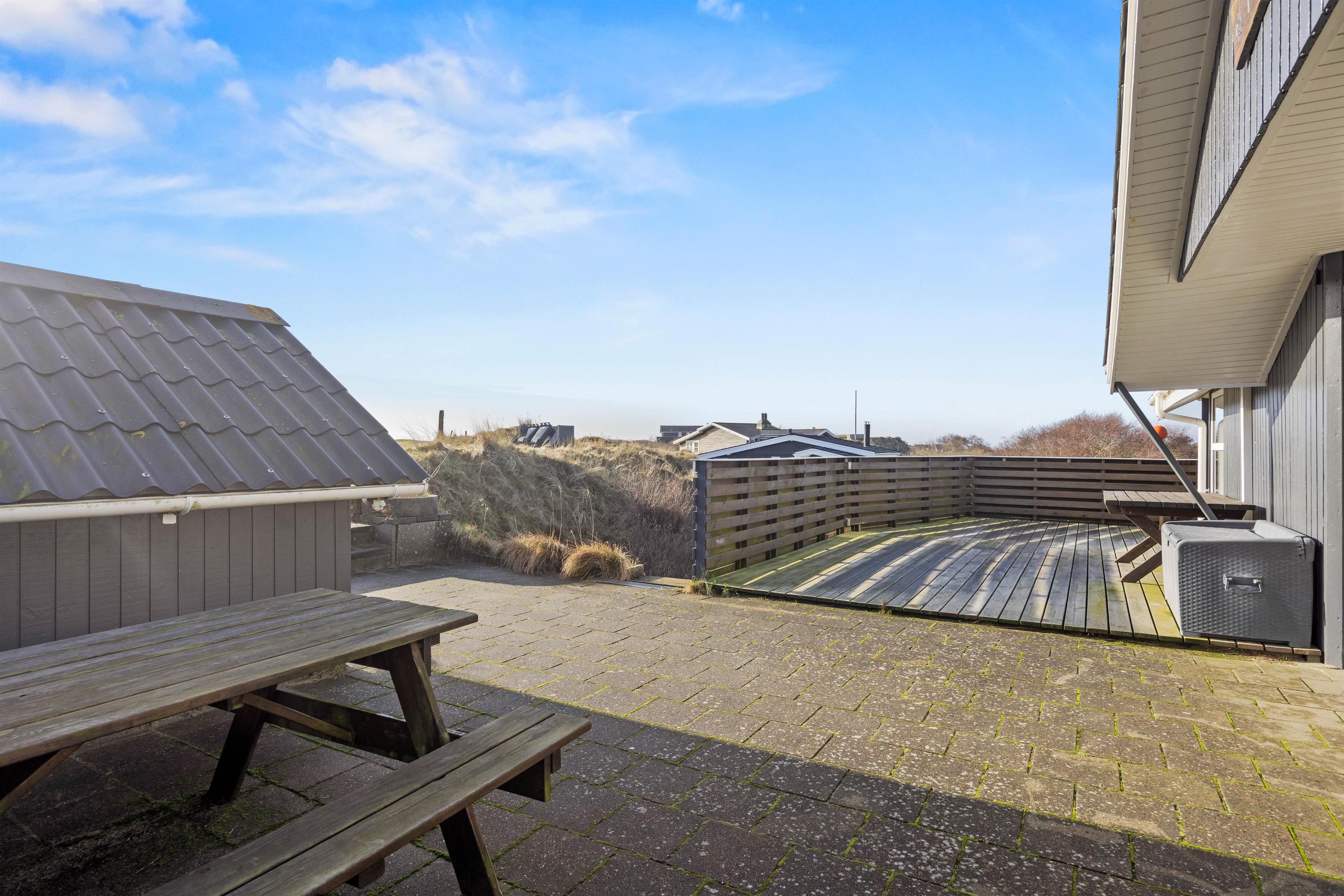 På terrassen kan I nyde de varme sommerdage og ikke mindst den fine udsigt udover området – et dejligt sted at nyde morgenkaffen eller en hyggelig middag i solnedgangen på den overdækkede terrasse. Slap af og nyd det gode vejr, alt imens familiens yngste leger i sandkassen eller på gyngerne.