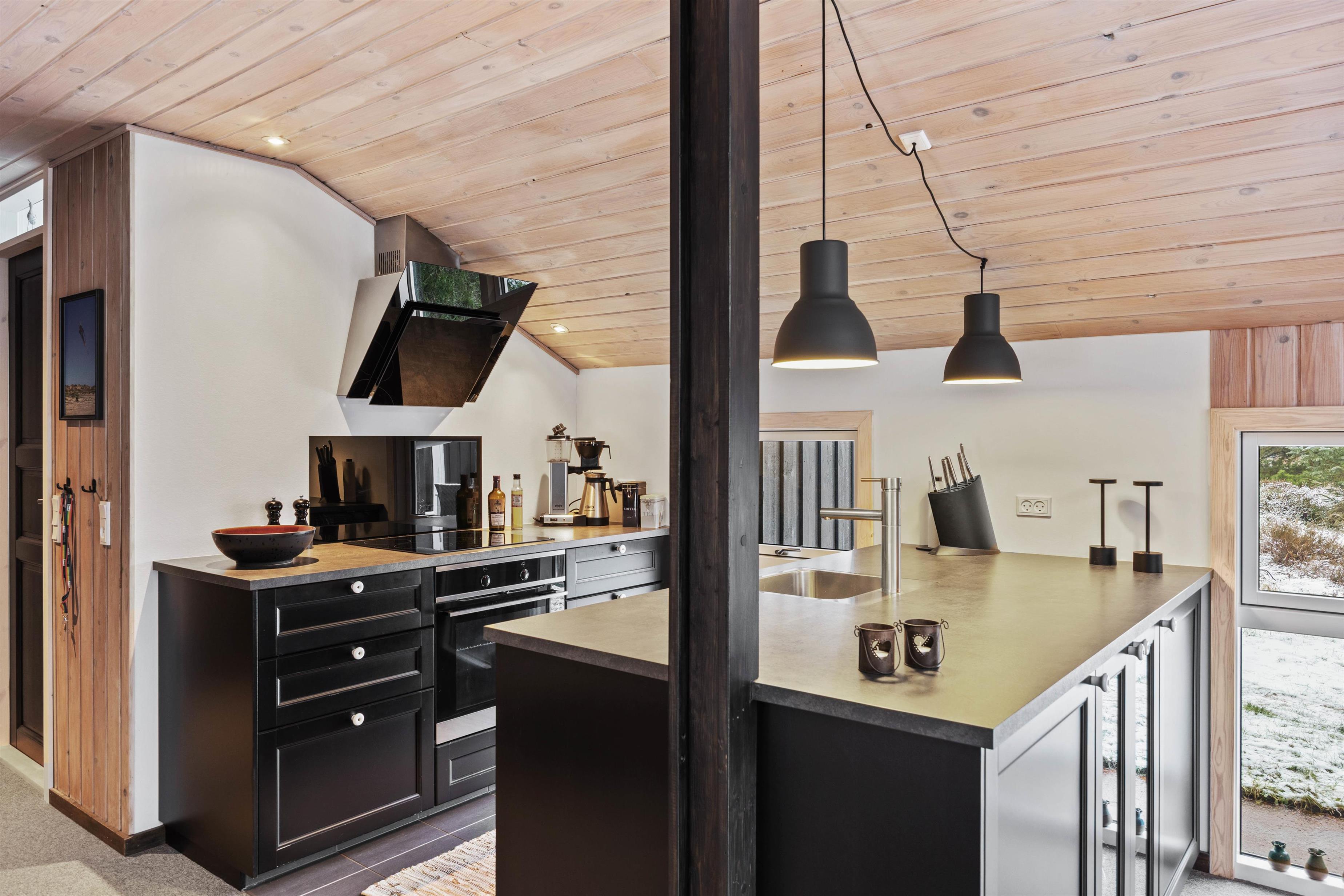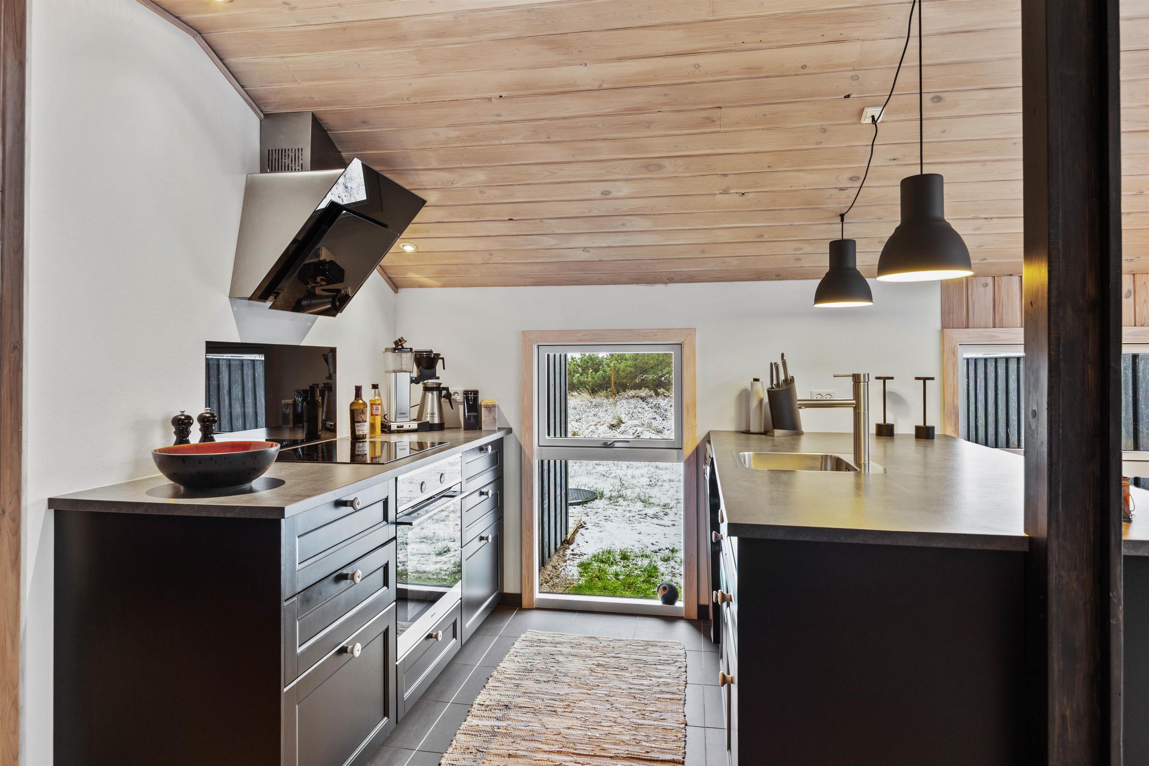Beliggenheden med kun 1300 meter til både Vesterhavet og nærmeste indkøbsmuligheder gør det nemt at tage en afstikker til stranden eller købe ind til en hyggelig aften i sommerhusets veludstyrede køkken. Med et ladestik til el-bil er sommerhuset klart til at imødekomme de behov, I måtte have for en miljøvenlig ferie.