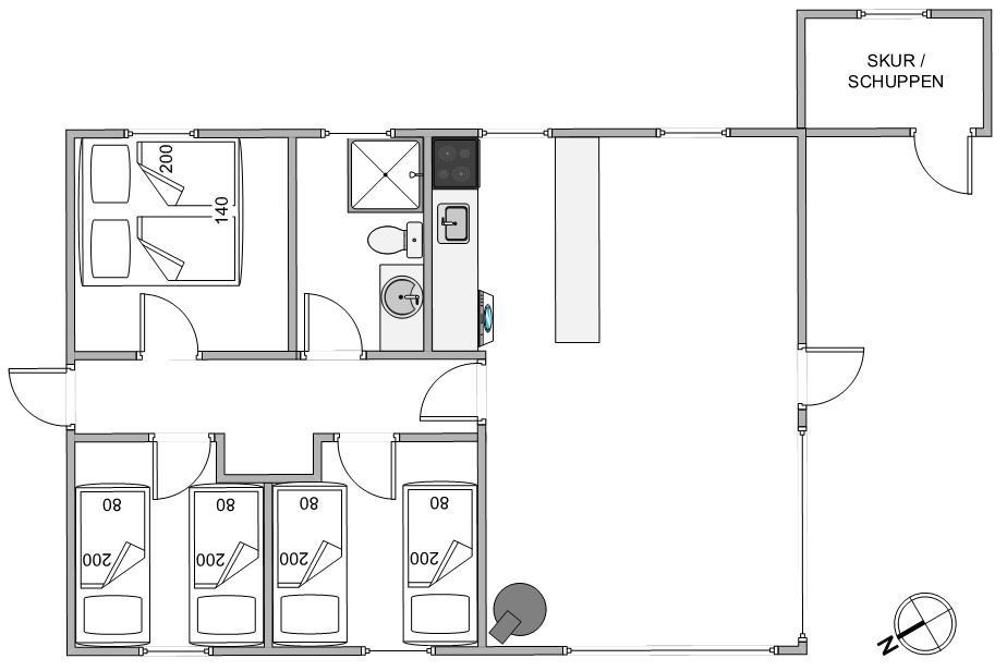 Det åbne køkken er veludstyret med blandt andet induktionskomfur og opvaskemaskine. Ved køkkenbordet er der plads til, at flere personer kan hjælpe med madlavningen. Det velholdte badeværelse med dagslys er udstyret med bruser og gulvvarme. Når du er træt efter en begivenhedsrig dag i den friske vesterhavsluft, kan du slappe af i et af de 3 hyggelige soveværelser.